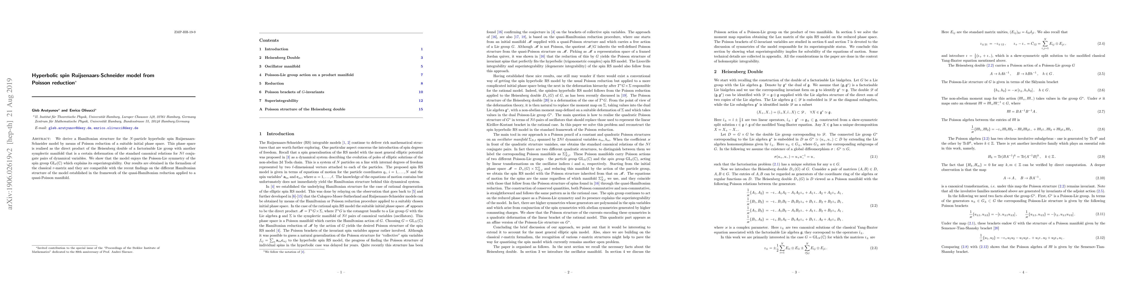 Researchers derive a Hamiltonian structure for the hyperbolic spin Ruijsenaars-Schneider model using Poisson reduction, revealing its Poisson-Lie symmetry and superintegrability. The findings build on recent work in the quasi-Hamiltonian framework.