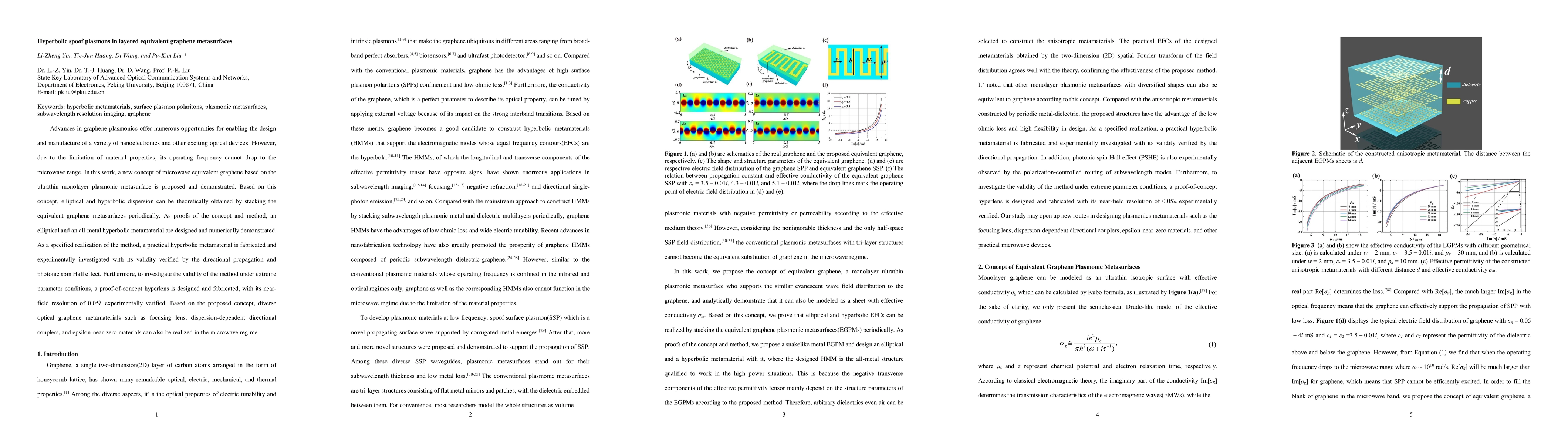 Researchers have developed a new concept for microwave equivalent graphene metasurfaces that can achieve hyperbolic spoof plasmons, enabling the design of nanoelectronics and optical devices in the microwave range.