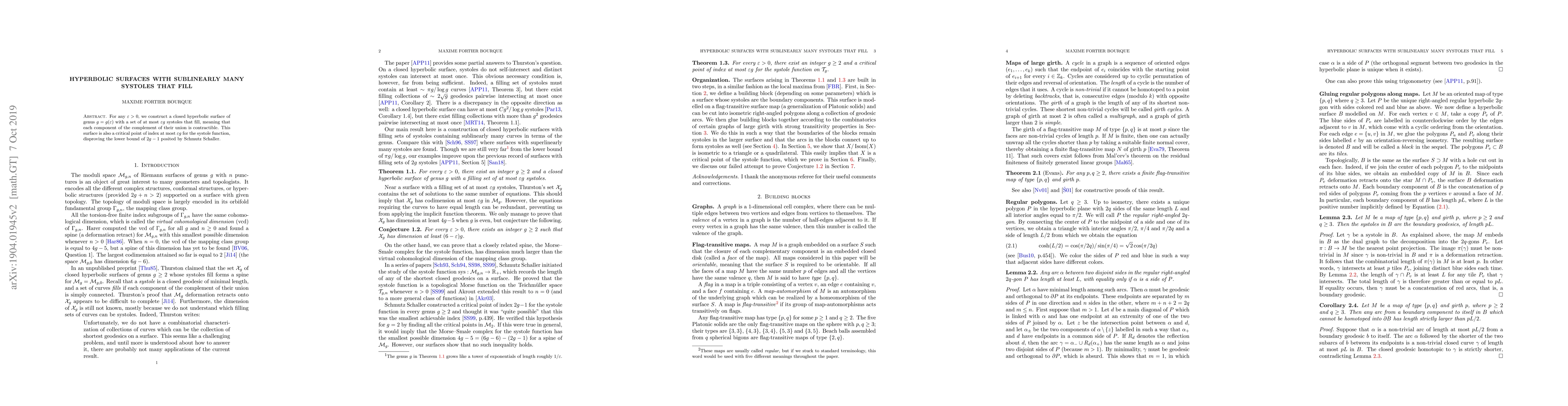 This paper constructs a closed hyperbolic surface of genus $g$ with a set of at most $\varepsilon g$ systoles that fill, disproving the previously held lower bound of $2g-1$ for systoles. The surface is also a critical point of index at most $\varepsilon g$.