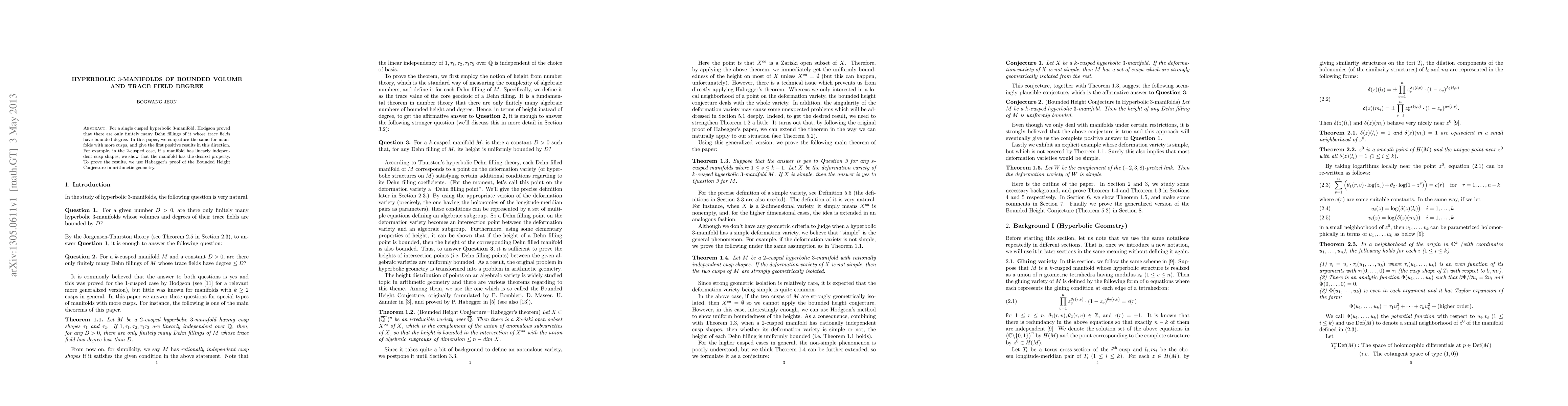 This paper extends Hodgson's finding on Dehn fillings of hyperbolic 3-manifolds to those with multiple cusps, conjecturing finiteness of such fillings with bounded trace field degree. For 2-cusped manifolds with independent cusp shapes, the paper proves this conjecture using insights from the proof of the Bounded Height Conjecture in arithmetic geometry.