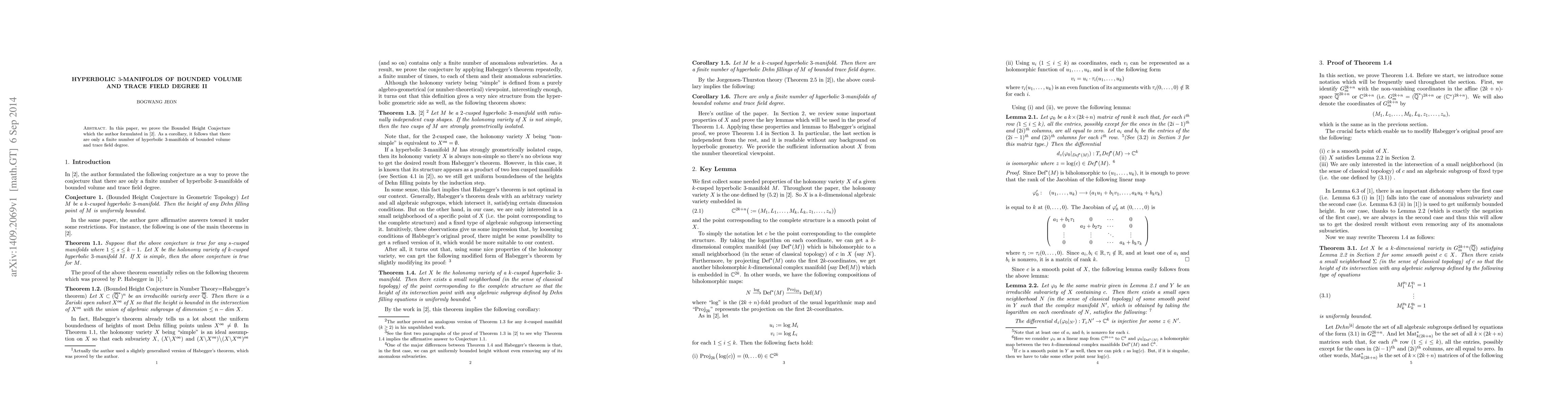 In this paper, we prove the Bounded Height Conjecture which the author formulated in [2]. As a corollary, it follows that there are only a finite number of hyperbolic three manifolds of bounded volume and trace field degree.