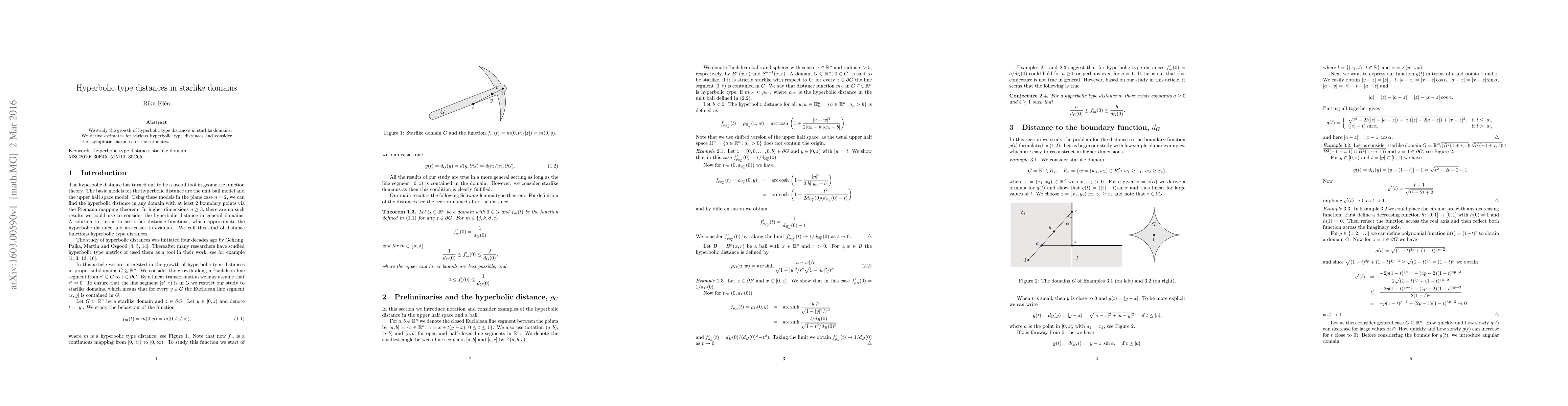 This paper investigates the growth of hyperbolic type distances within starlike domains, deriving estimates for these distances and examining the asymptotic sharpness of these estimates. The findings provide insights into the geometric properties of starlike domains.