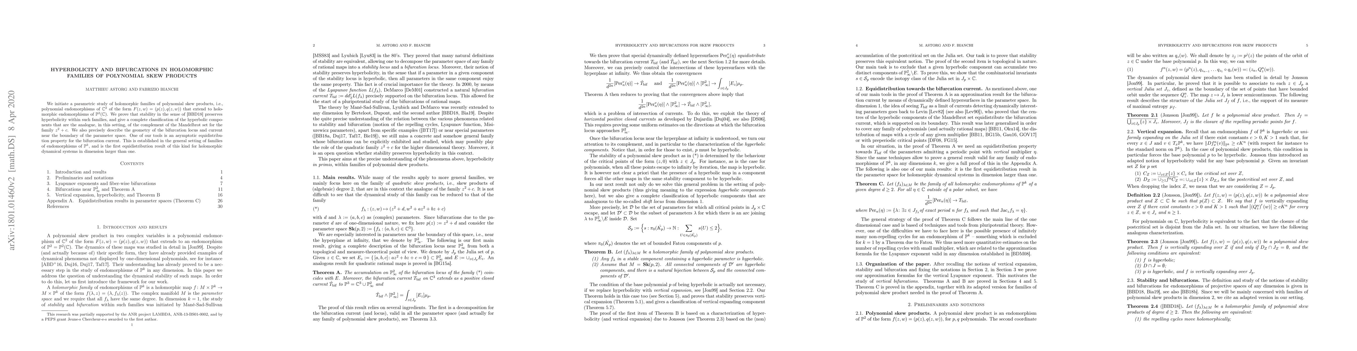 This paper studies holomorphic families of polynomial skew products, proving that dynamical stability preserves hyperbolicity and classifying hyperbolic components. It also describes the bifurcation geometry and establishes an equidistribution property for bifurcation currents in higher-dimensional holomorphic dynamical systems.