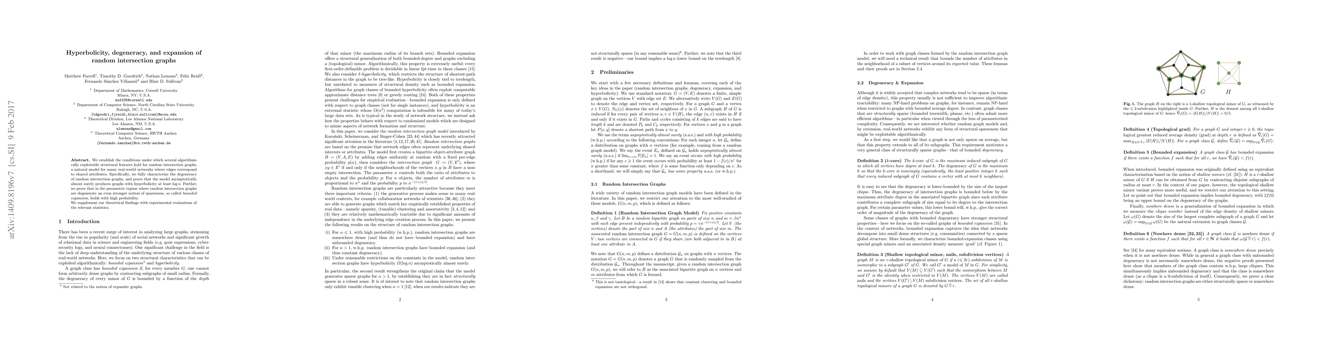 This paper characterizes the structural properties of random intersection graphs, showing that they exhibit degeneracy, hyperbolicity, and bounded expansion under certain conditions. Theoretical results are supported by experimental evaluations.