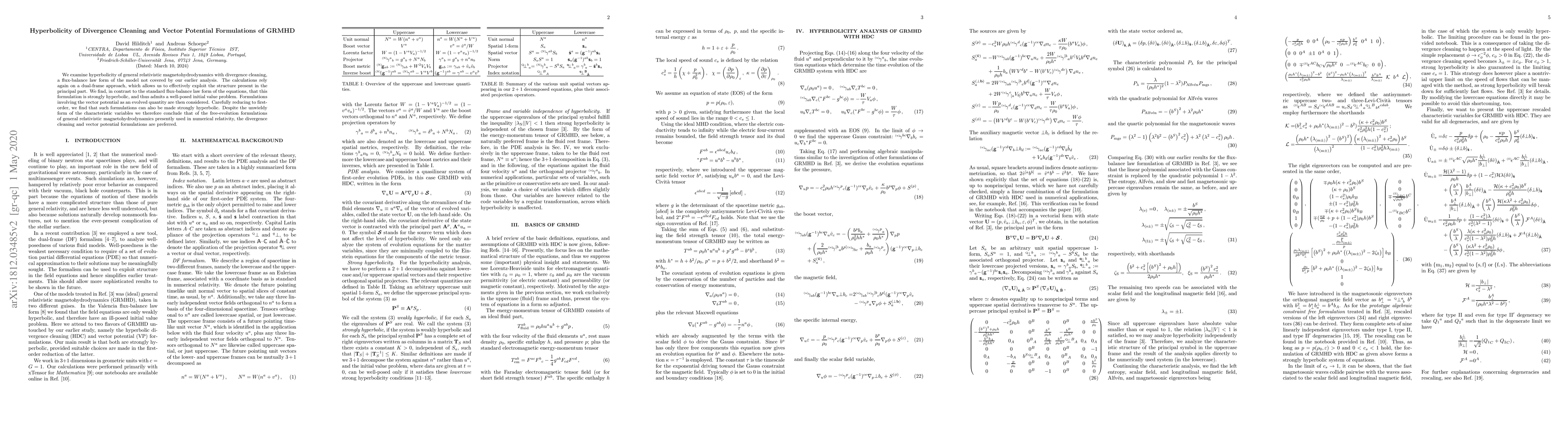 We examine hyperbolicity of general relativistic magnetohydrodynamics with divergence cleaning, a flux-balance law form of the model not covered by our earlier analysis. The calculations rely again on a dual-frame approach, which allows us to effectively exploit the structure present in the principal part. We find, in contrast to the standard flux-balance law form of the equations, that this formulation is strongly hyperbolic, and thus admits a well-posed initial value problem. Formulations involving the vector potential as an evolved quantity are then considered. Carefully reducing to first order, we find that such formulations can also be made strongly hyperbolic. Despite the unwieldy form of the characteristic variables we therefore conclude that of the free-evolution formulations of general relativistic magnetohydrodynamics presently used in numerical relativity, the divergence cleaning and vector potential formulations are preferred.