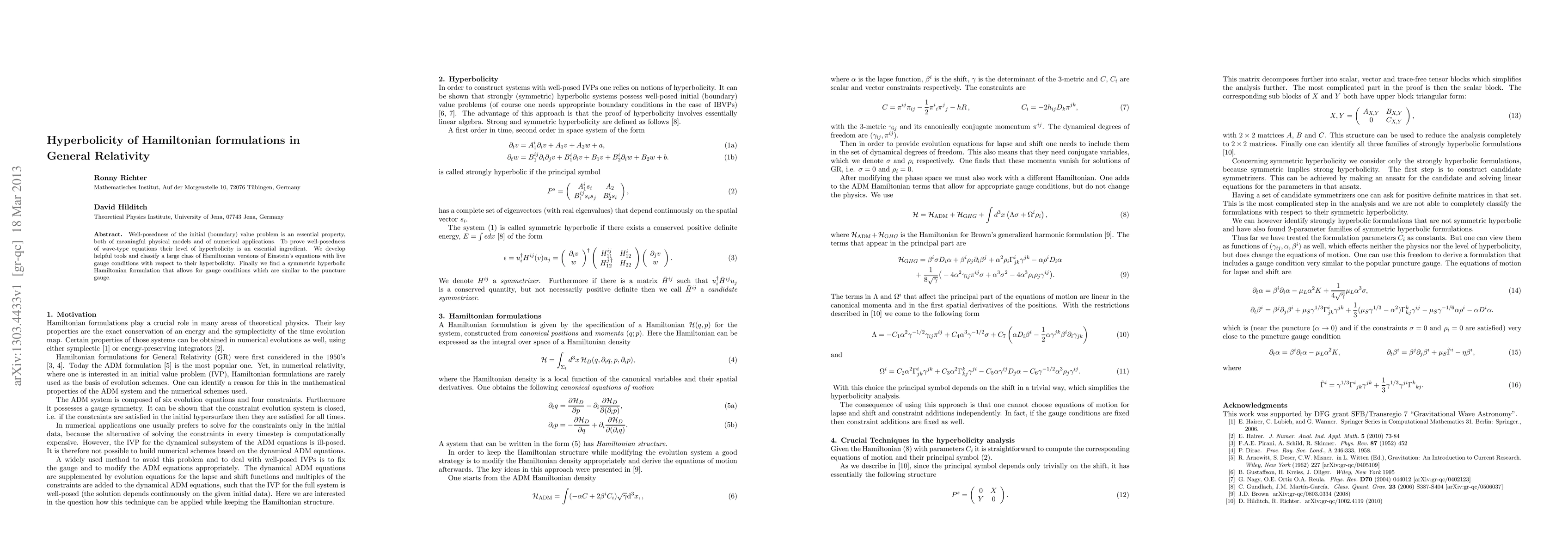 Well-posedness of the initial (boundary) value problem is an essential property, both of meaningful physical models and of numerical applications. To prove well-posedness of wave-type equations their level of hyperbolicity is an essential ingredient. We develop helpful tools and classify a large class of Hamiltonian versions of Einstein's equations with live gauge conditions with respect to their hyperbolicity. Finally we find a symmetric hyperbolic Hamiltonian formulation that allows for gauge conditions which are similar to the puncture gauge.