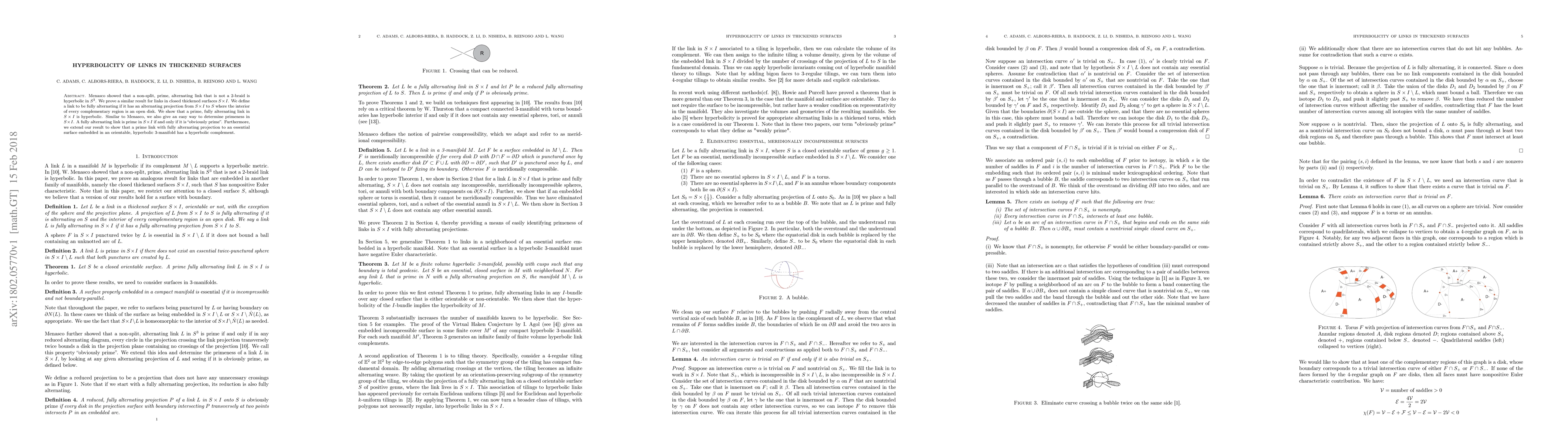 Menasco showed that a non-split, prime, alternating link that is not a 2-braid is hyperbolic in $S^3$. We prove a similar result for links in closed thickened surfaces $S \times I$. We define a link to be fully alternating if it has an alternating projection from $S\times I$ to $S$ where the interior of every complementary region is an open disk. We show that a prime, fully alternating link in $S\times I$ is hyperbolic. Similar to Menasco, we also give an easy way to determine primeness in $S\times I$. A fully alternating link is prime in $S\times I$ if and only if it is "obviously prime". Furthermore, we extend our result to show that a prime link with fully alternating projection to an essential surface embedded in an orientable, hyperbolic 3-manifold has a hyperbolic complement.