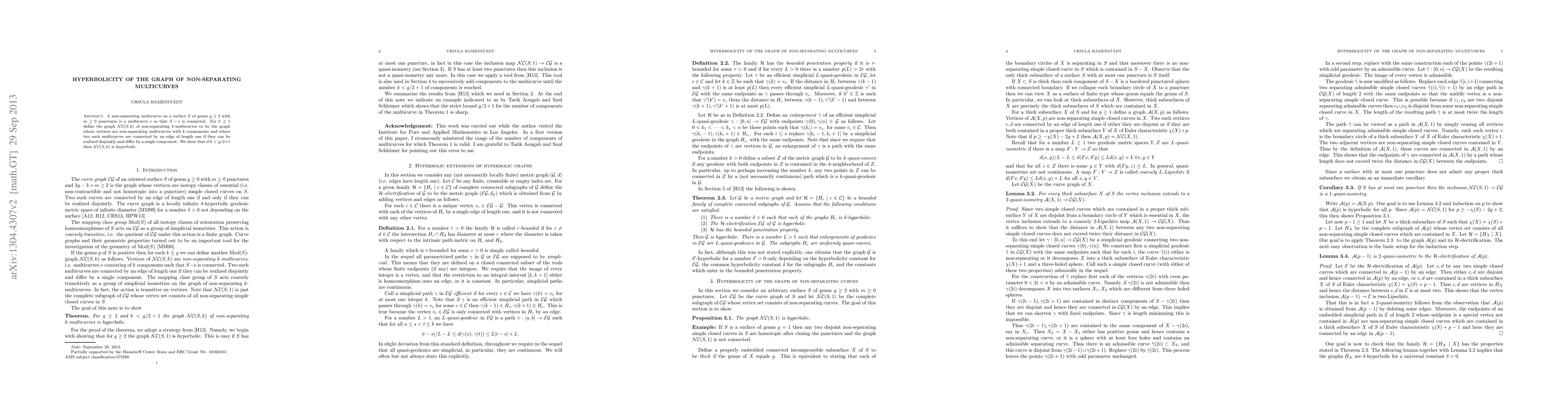 This paper demonstrates that the graph of non-separating k-multicurves on a surface of genus g with m punctures is hyperbolic when k is less than g/2 + 1. This establishes a connection between the combinatorial structure of multicurves and hyperbolic geometry.