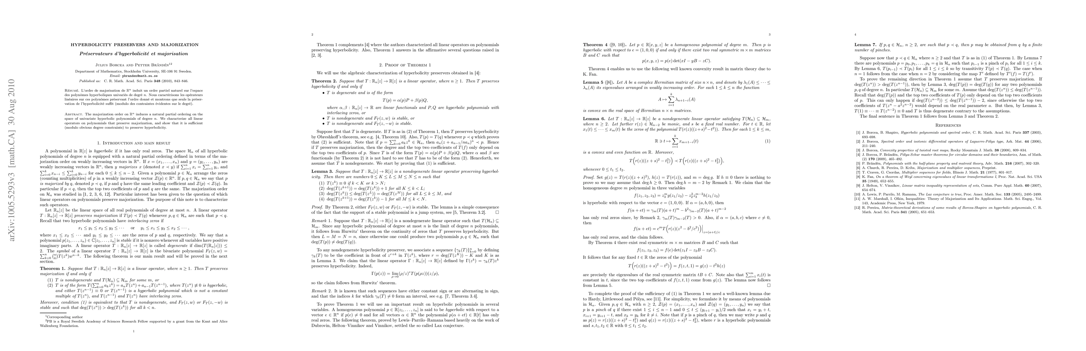 This paper characterizes linear operators that preserve majorization among univariate hyperbolic polynomials, demonstrating that such operators must, aside from degree constraints, also preserve hyperbolicity. The study focuses on the relationship between majorization and hyperbolicity in polynomial spaces.