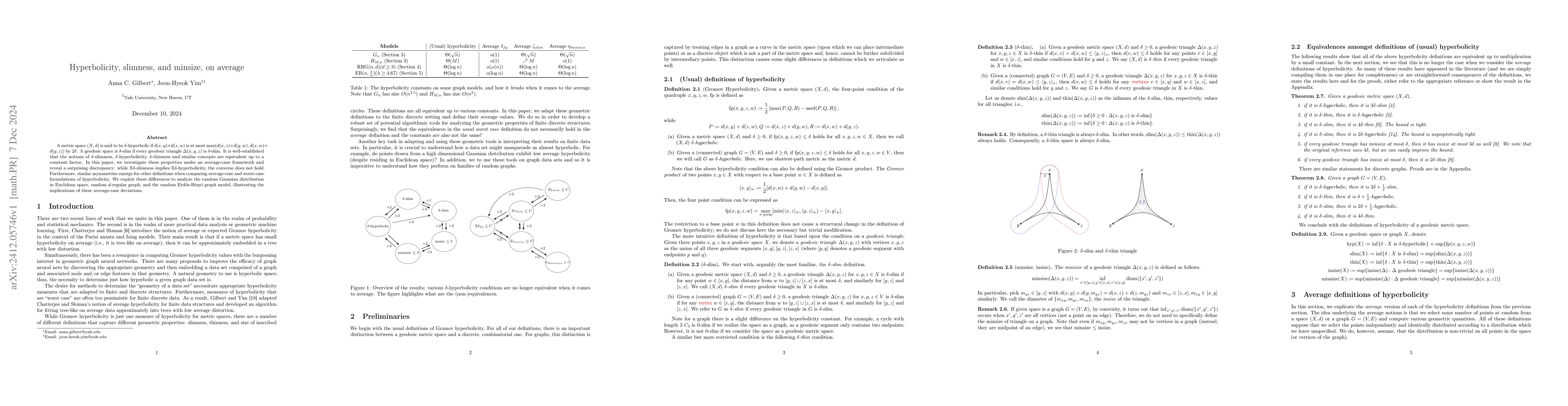 A metric space $(X,d)$ is said to be $\delta$-hyperbolic if $d(x,y)+d(z,w)$ is at most $\max(d(x,z)+d(y,w), d(x,w)+d(y,z))$ by $2 \delta$. A geodesic space is $\delta$-slim if every geodesic triangle $\Delta(x,y,z)$ is $\delta$-slim. It is well-established that the notions of $\delta$-slimness, $\delta$-hyperbolicity, $\delta$-thinness and similar concepts are equivalent up to a constant factor. In this paper, we investigate these properties under an average-case framework and reveal a surprising discrepancy: while $\mathbb{E}\delta$-slimness implies $\mathbb{E}\delta$-hyperbolicity, the converse does not hold. Furthermore, similar asymmetries emerge for other definitions when comparing average-case and worst-case formulations of hyperbolicity. We exploit these differences to analyze the random Gaussian distribution in Euclidean space, random $d$-regular graph, and the random Erd\H{o}s-R\'enyi graph model, illustrating the implications of these average-case deviations.