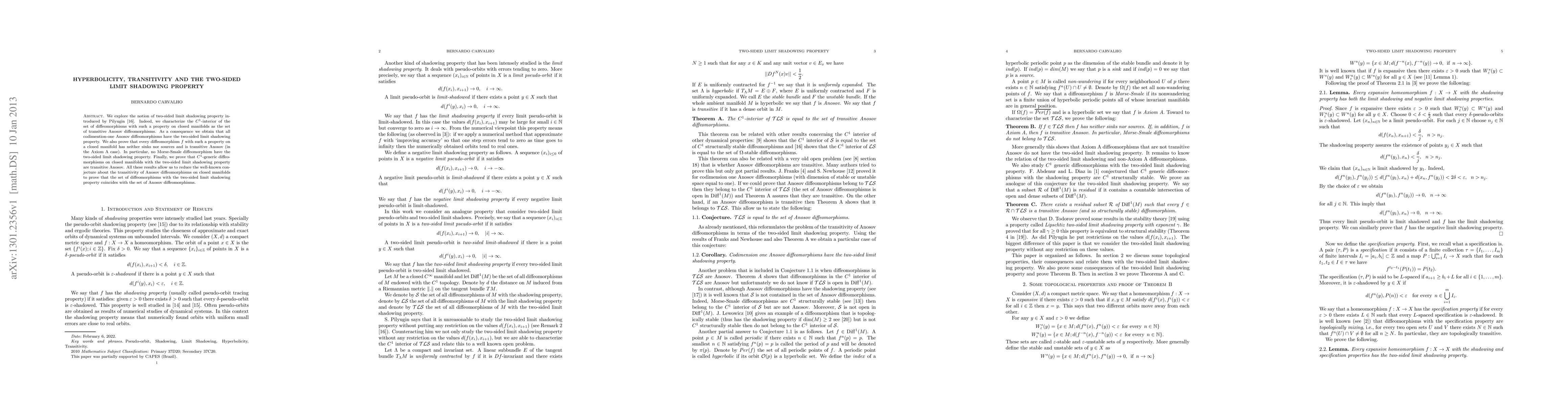 We explore the notion of two-sided limit shadowing property introduced by Pilyugin \cite{P1}. Indeed, we characterize the $C^1$-interior of the set of diffeomorphisms with such a property on closed manifolds as the set of transitive Anosov diffeomorphisms. As a consequence we obtain that all codimention-one Anosov diffeomorphisms have the two-sided limit shadowing property. We also prove that every diffeomorphism $f$ with such a property on a closed manifold has neither sinks nor sources and is transitive Anosov (in the Axiom A case). In particular, no Morse-Smale diffeomorphism have the two-sided limit shadowing property. Finally, we prove that $C^1$-generic diffeomorphisms on closed manifolds with the two-sided limit shadowing property are transitive Anosov. All these results allow us to reduce the well-known conjecture about the transitivity of Anosov diffeomorphisms on closed manifolds to prove that the set of diffeomorphisms with the two-sided limit shadowing property coincides with the set of Anosov diffeomorphisms.