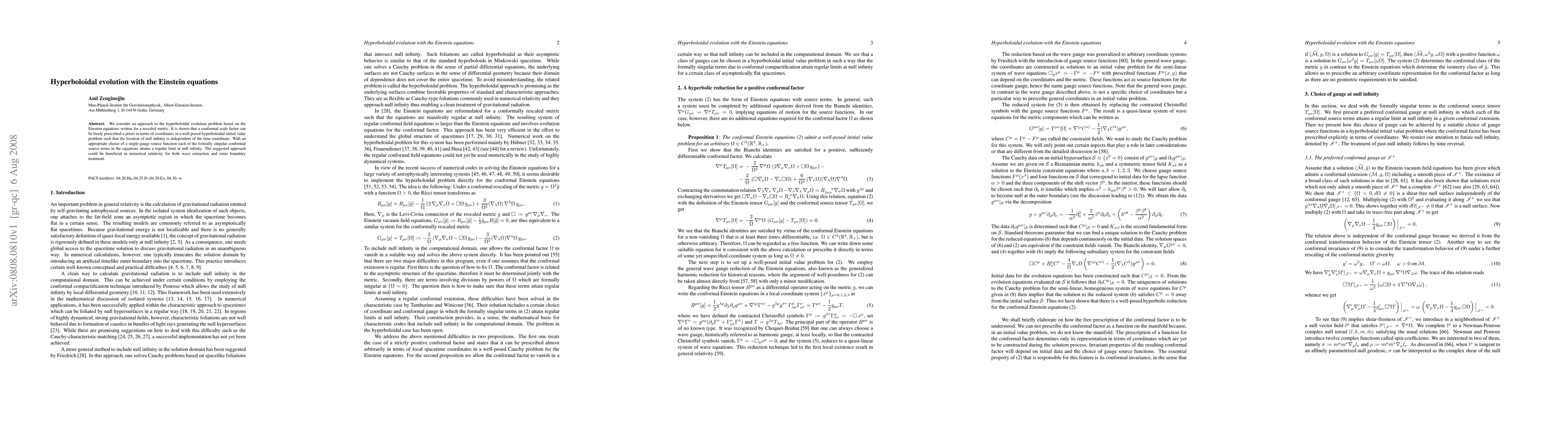 This paper proposes a method for hyperboloidal evolution in the Einstein equations using a rescaled metric, allowing for a conformal scale factor to be prescribed, ensuring a well-posed initial value problem with a fixed null infinity location. The approach aims to regularize singular conformal source terms, potentially improving numerical relativity simulations.