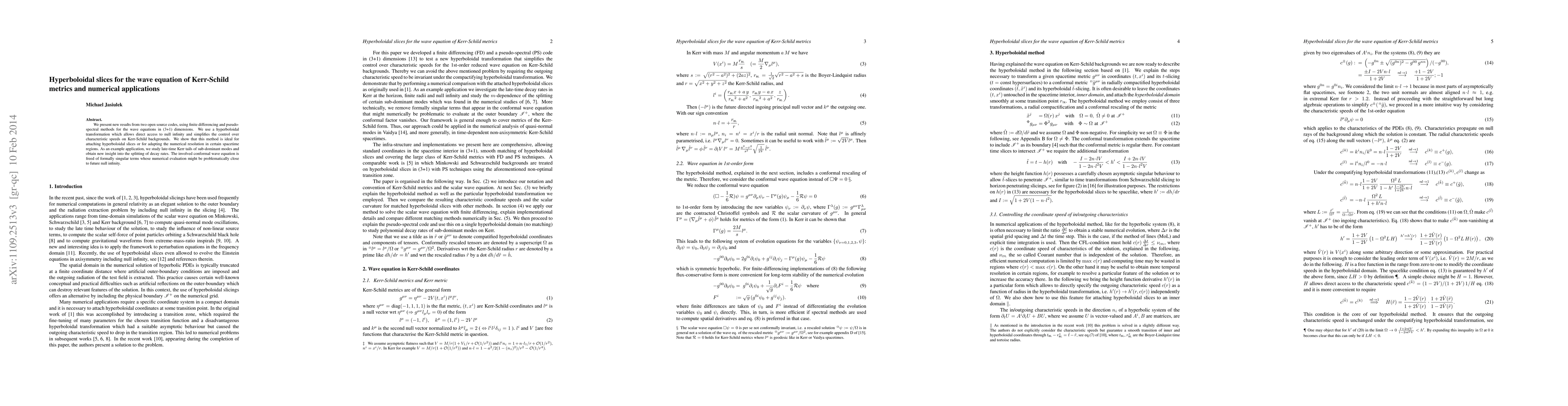This paper introduces a hyperboloidal transformation technique for solving the wave equation in Kerr-Schild metrics, employing numerical methods to study spacetime regions. The method simplifies the control of characteristic speeds and provides insights into the decay rates of sub-dominant modes, particularly in the context of Kerr tails.