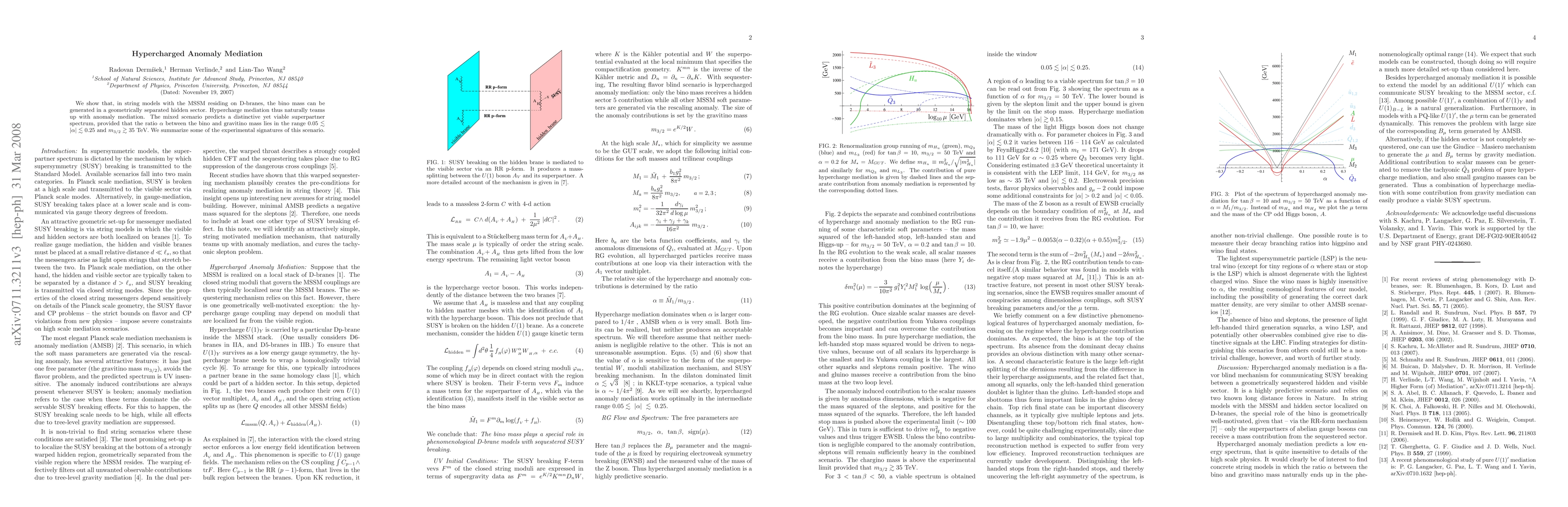We show that, in string models with the MSSM residing on D-branes, the bino mass can be generated in a geometrically separated hidden sector. Hypercharge mediation thus naturally teams up with anomaly mediation. The mixed scenario predicts a distinctive yet viable superpartner spectrum, provided that the ratio \alpha between the bino and gravitino mass lies in the range 0.05 < |\alpha| < 0.25, and m_{3/2} > 35 TeV. We summarize some of the phenomenological features of this scenario.