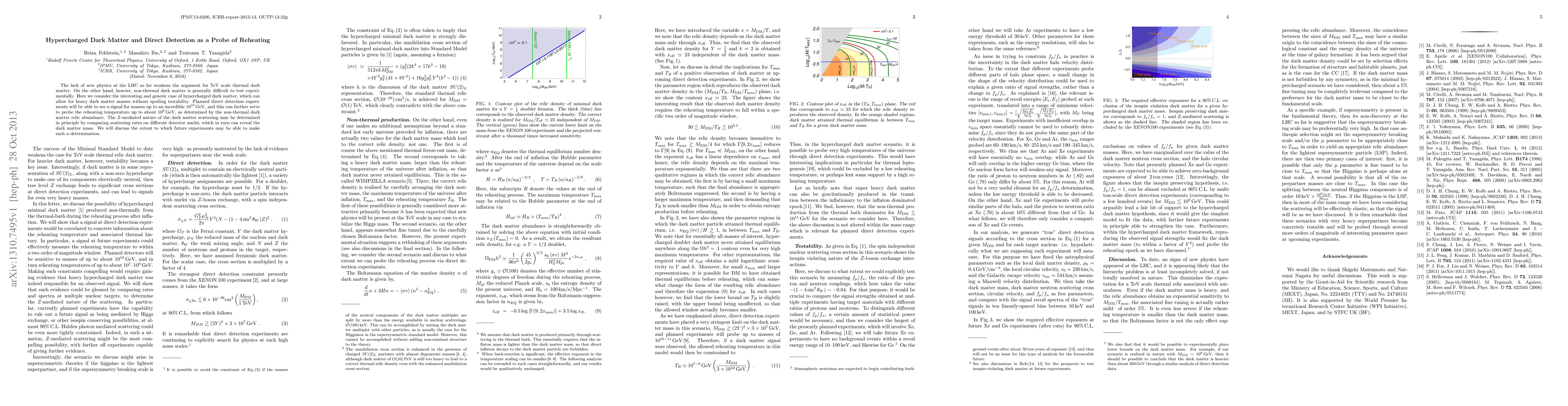This paper explores hypercharged dark matter, which allows for heavy masses without compromising experimental testability, and suggests that upcoming direct detection experiments could detect signals up to $10^{10}$ GeV, probing reheating temperatures up to $10^9$ GeV. The study also discusses how scattering rates on different nuclei could reveal the dark matter mass.