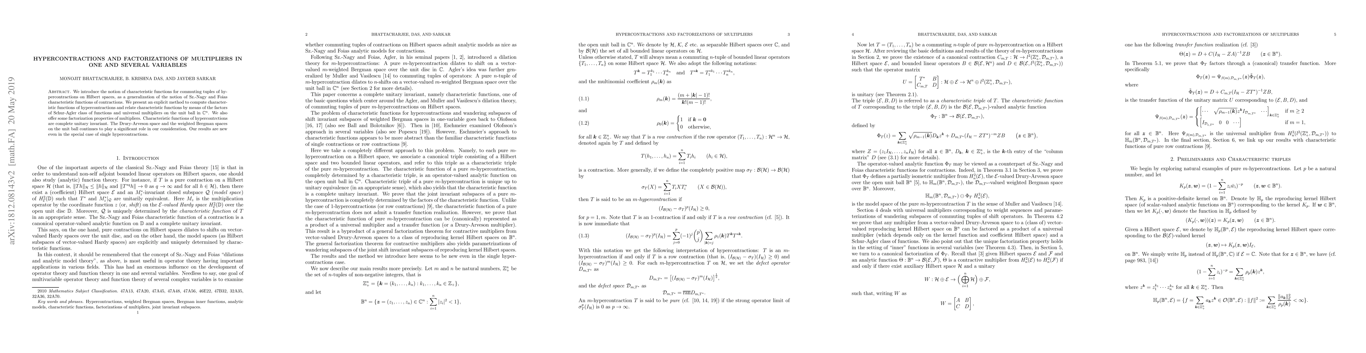 This paper introduces characteristic functions for commuting hypercontraction tuples, generalizing Sz.-Nagy and Foias' work on contractions. It presents a method to compute these functions and connects them to Schur-Agler class factors and universal multipliers on the unit ball in (mathbb{C}^n). The results also offer multiplier factorization properties, with complete unitary invariance for characteristic functions of hypercontractions. The study emphasizes the role of Drury-Arveson and weighted Bergman spaces, with new findings even for single hypercontractions.