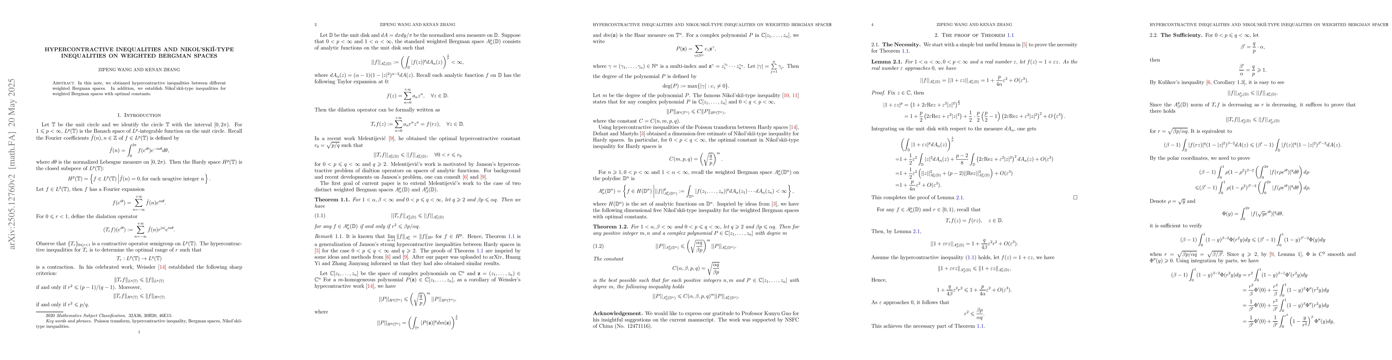 Researchers established hypercontractive inequalities and Nikol'ski÷-type inequalities for weighted Bergman spaces with optimal constants, advancing understanding of these complex mathematical structures.
