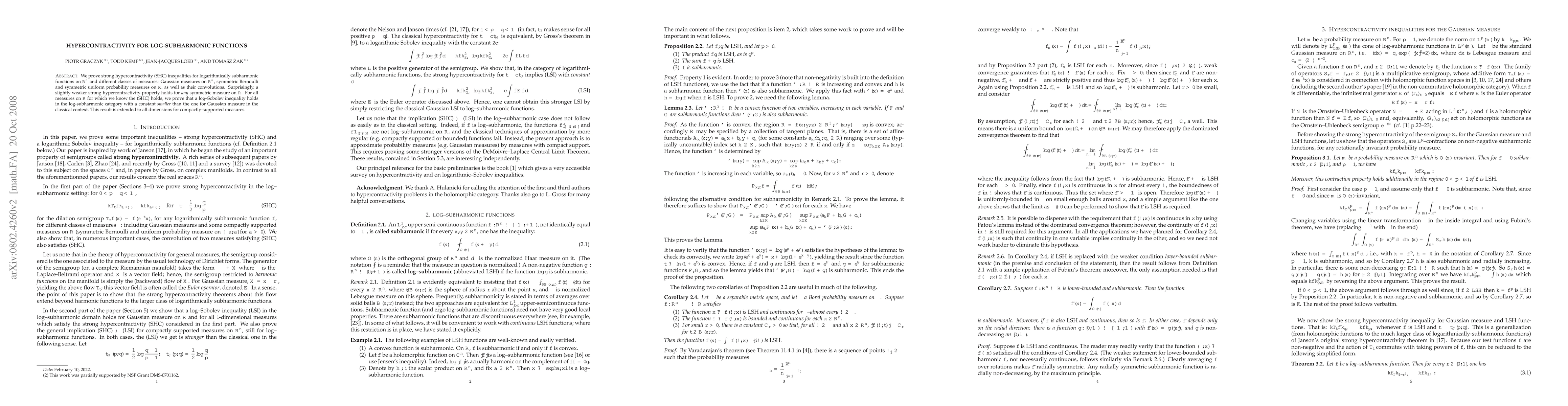 This paper proves strong hypercontractivity inequalities for log-subharmonic functions across various measures, including Gaussian and Bernoulli measures. It reveals that while a slightly weaker hypercontractivity holds for any symmetric measure on $\RR$, a log-Sobolev inequality with a smaller constant applies to these measures compared to Gaussian measure.
