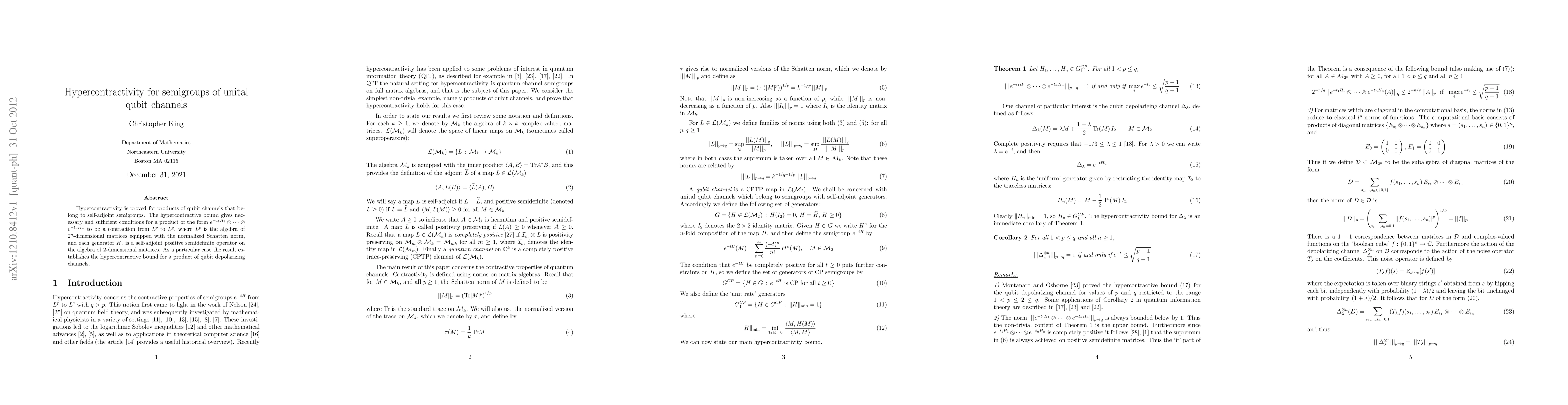 This research proves hypercontractivity for semigroups of unital qubit channels, providing necessary and sufficient conditions for matrix contraction in L^p to L^q spaces. It specifically addresses products of qubit depolarizing channels, crucial for quantum information theory and computational tasks.