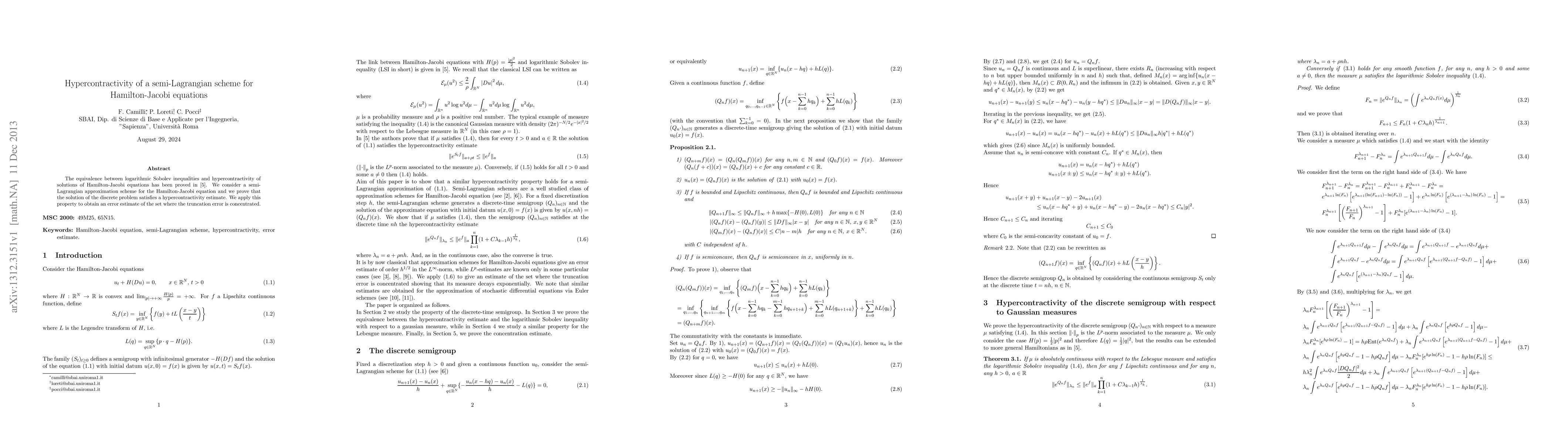 This paper proves that a semi-Lagrangian scheme for Hamilton-Jacobi equations satisfies a hypercontractivity estimate, extending the theoretical results from continuous to discrete solutions. The authors also derive an error estimate for the regions where truncation errors are concentrated.
