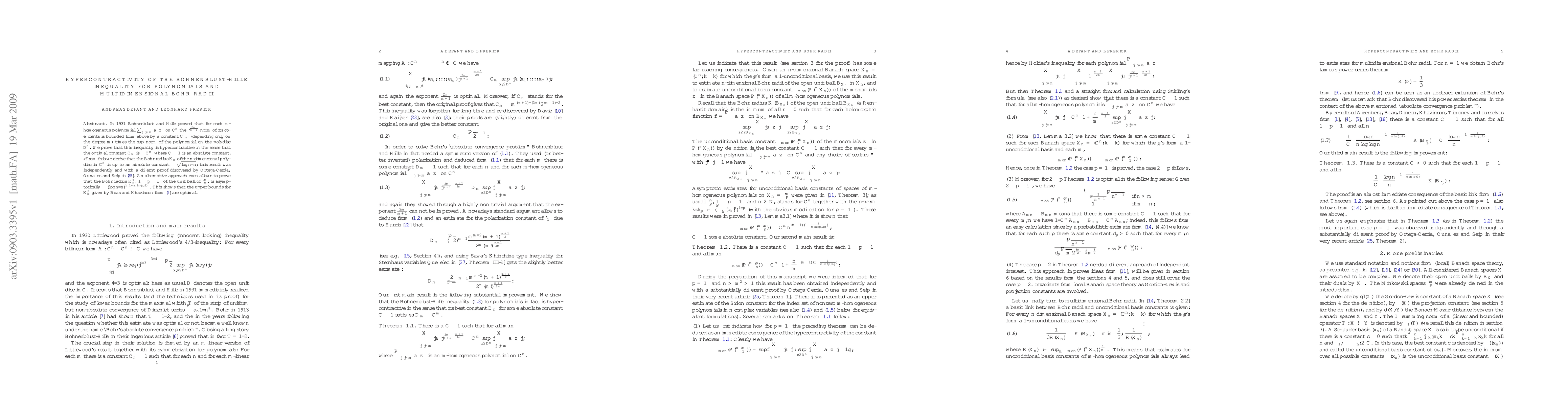 In 1931 Bohnenblust and Hille proved that for each m-homogeneous polynomial $\sum_{|\alpha| = m} a_\alpha z^\alpha$ on $\C^n$ the $\ell^{\frac{2m}{m+1}}$-norm of its coefficients is bounded from above by a constant $C_m$ (depending only on the degree $m$) times the sup norm of the polynomial on the polydisc $\mathbb{D}^n$. We prove that this inequality is hypercontractive in the sense that the optimal constant $C_m$ is $\leq C^m$ where $C \geq 1$ is an absolute constant. From this we derive that the Bohr radius $K_n$ of the $n$-dimensional polydisc in $\mathbb{C}^n$ is up to an absolute constant $\geq \sqrt{\log n/n}$; this result was independently and with a differnt proof discovered by Ortega-Cerd{\`a}, Ouna\"ies and Seip. An alternative approach even allows to prove that the Bohr radius $K_n^p$, $1 \leq p \leq \infty $ of the unit ball of $\ell_n^p ,$ is asymptotically $ \geq (\log n/n) ^{1-1/ \min (p,2)}$. This shows that the upper bounds for $K_n^p$ given by Boas and Khavinson are optimal.