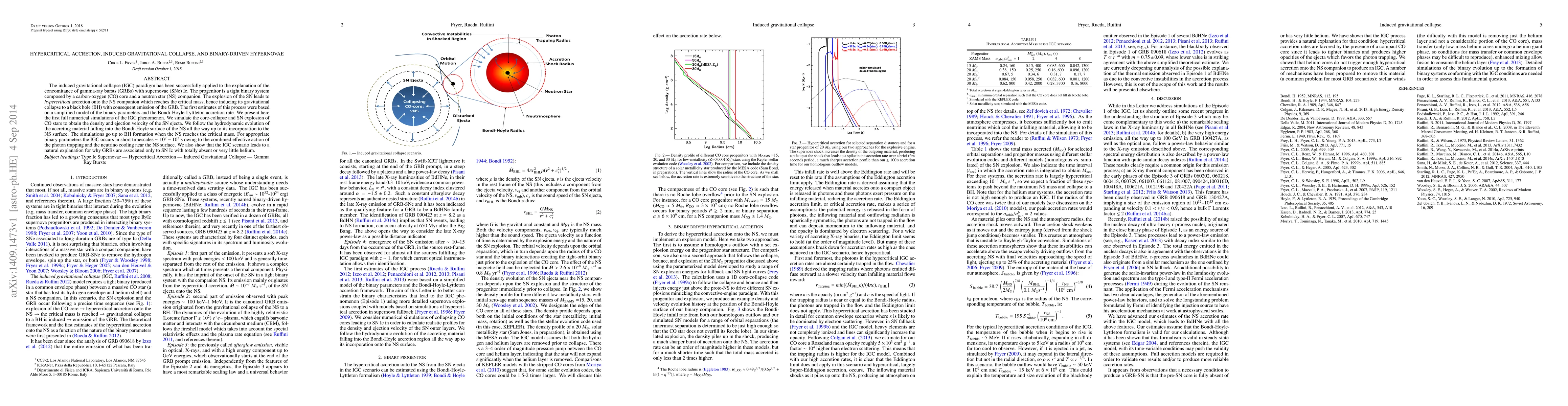 This paper presents the first full numerical simulations of the induced gravitational collapse (IGC) phenomenon, explaining the concomitance of gamma-ray bursts (GRBs) with supernovae (SNe) Ic. The simulations detail the hydrodynamic evolution of hypercritical accretion onto a neutron star companion in a binary system, leading to its collapse into a black hole and the emission of a GRB.