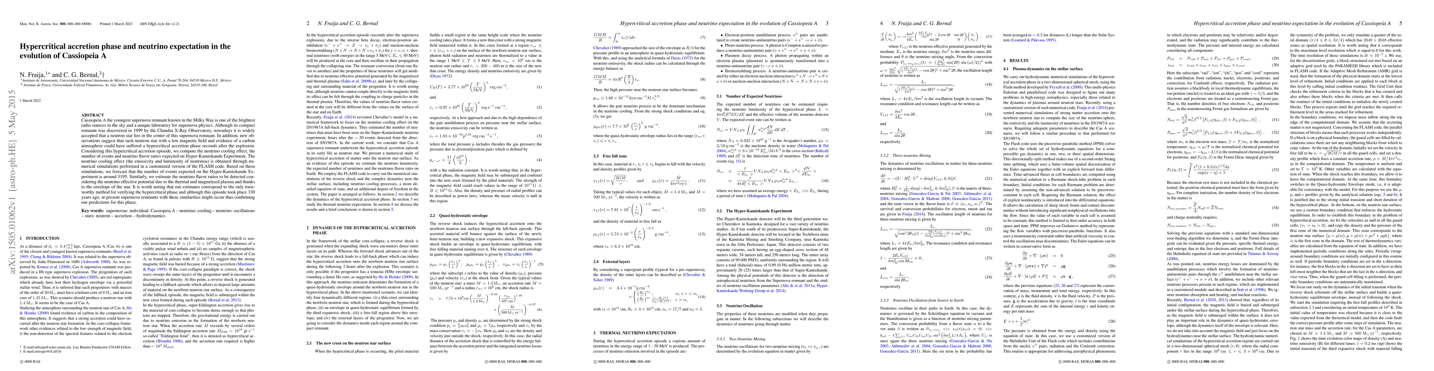 Researchers predict that Cassiopeia A, a young supernova remnant, could have experienced a hypercritical accretion phase 330 years ago, leading to expected neutrino events on the Hyper-Kamiokande Experiment of around 3195.