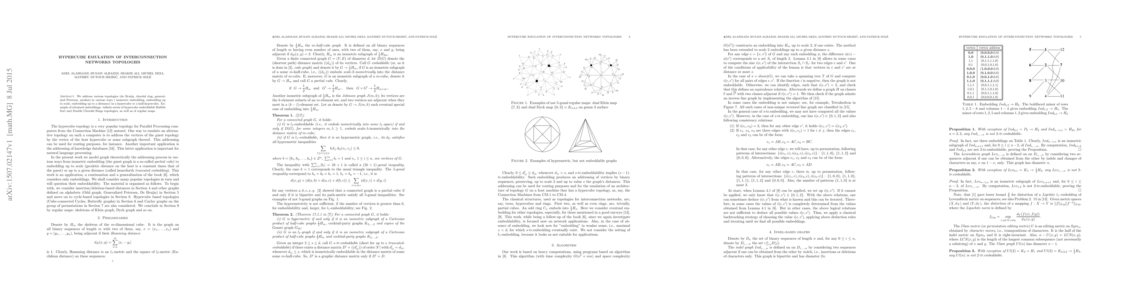 This paper explores the emulation of various interconnection network topologies, including de Bruijn, chordal ring, generalized Petersen, and meshes, within hypercube or half-hypercube frameworks using different embedding techniques. It presents infinite series of hypercube embeddable topologies like Bubble Sort and Double Chordal Rings, along with regular maps.