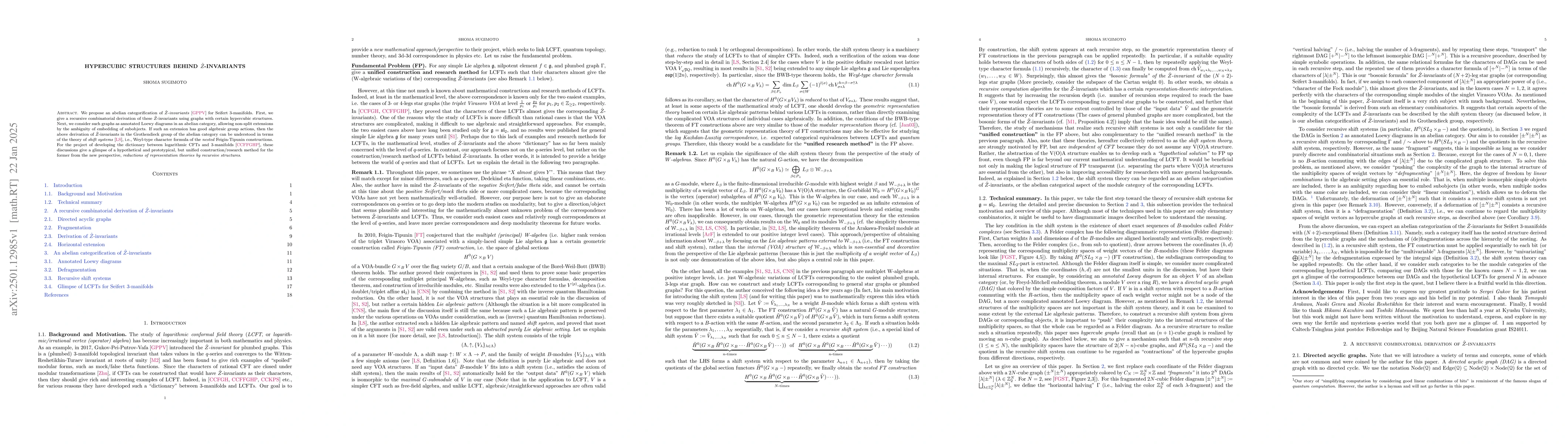 We propose an abelian categorification of $\hat{Z}$-invariants for Seifert $3$-manifolds. First, we give a recursive combinatorial derivation of these $\hat{Z}$-invariants using graphs with certain hypercubic structures. Next, we consider such graphs as annotated Loewy diagrams in an abelian category, allowing non-split extensions by the ambiguity of embedding of subobjects. If such an extension has good algebraic group actions, then the above derivation of $\hat{Z}$-invariants in the Grothendieck group of the abelian category can be understood in terms of the theory of shift systems, i.e., Weyl-type character formula of the nested Feigin-Tipunin constructions. For the project of developing the dictionary between logarithmic CFTs and 3-manifolds, these discussions give a glimpse of a hypothetical and prototypical, but unified construction/research method for the former from the new perspective, reductions of representation theories by recursive structures.
