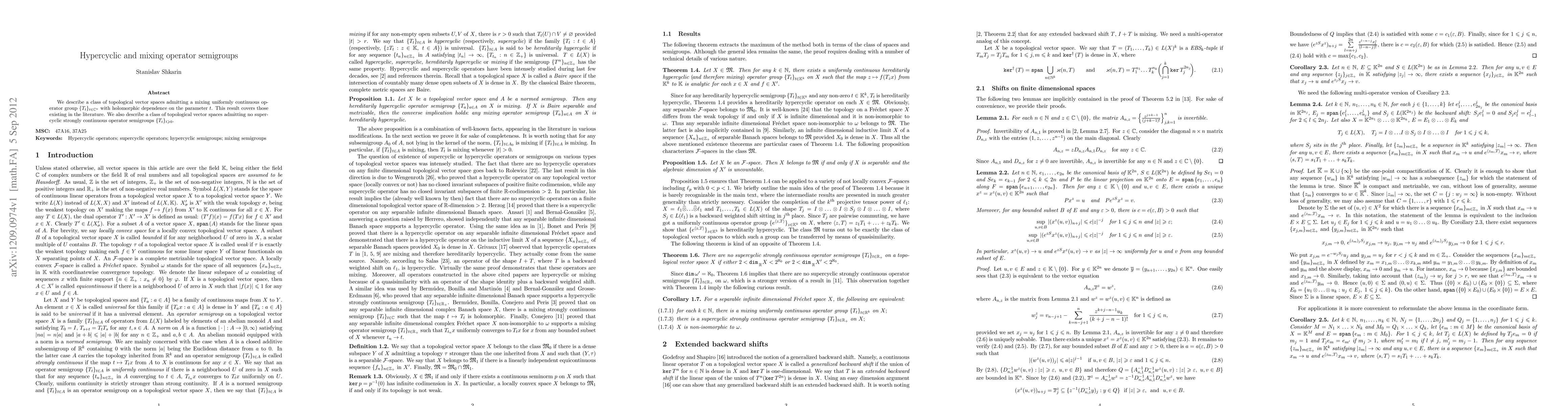 We describe a class of topological vector spaces admitting a mixing uniformly continuous operator group ${T_t}_{t\in\C^n}$ with holomorphic dependence on the parameter $t$. This result covers those existing in the literature. We also describe a class of topological vector spaces admitting no supercyclic strongly continuous operator semigroups ${T_t}_{t\geq 0}$.
