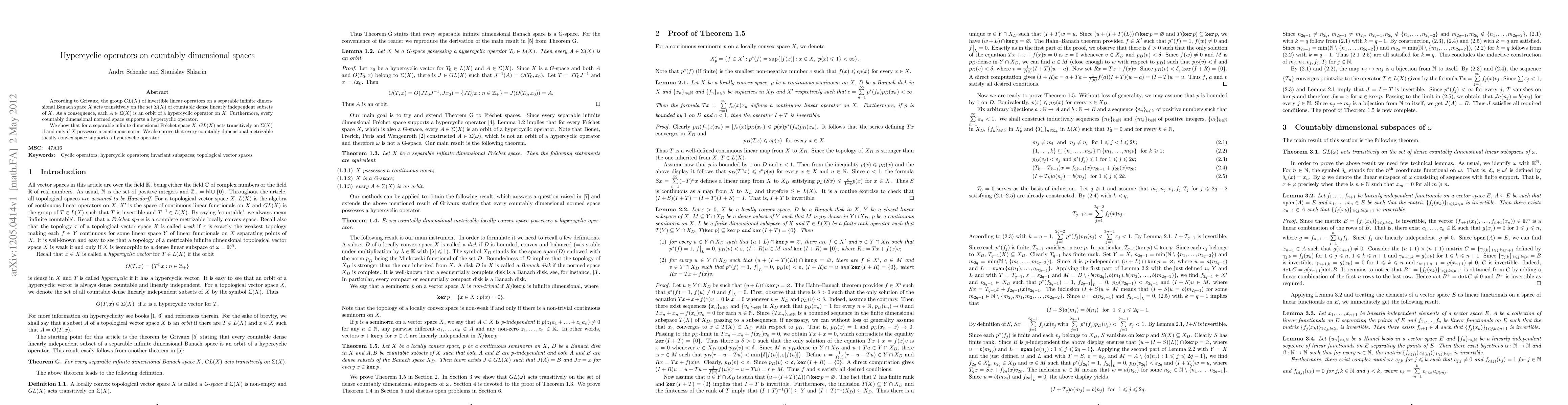A separable infinite dimensional Fréchet space supports a hypercyclic operator if and only if it has a continuous norm, and every countably dimensional metrizable locally convex space also supports a hypercyclic operator.