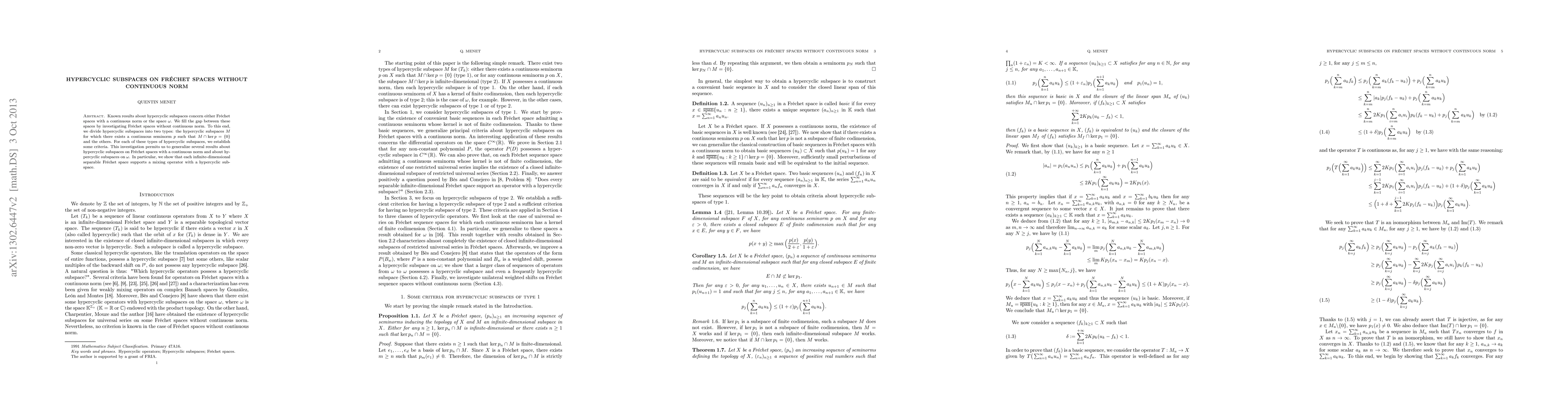 Known results about hypercyclic subspaces concern either Fr\'echet spaces with a continuous norm or the space \omega. We fill the gap between these spaces by investigating Fr\'echet spaces without continuous norm. To this end, we divide hypercyclic subspaces into two types: the hypercyclic subspaces M for which there exists a continuous seminorm p such that M\cap \ker p=\{0\} and the others. For each of these types of hypercyclic subspaces, we establish some criteria. This investigation permits us to generalize several results about hypercyclic subspaces on Fr\'echet spaces with a continuous norm and about hypercyclic subspaces on \omega. In particular, we show that each infinite-dimensional separable Fr\'echet space supports a mixing operator with a hypercyclic subspace.