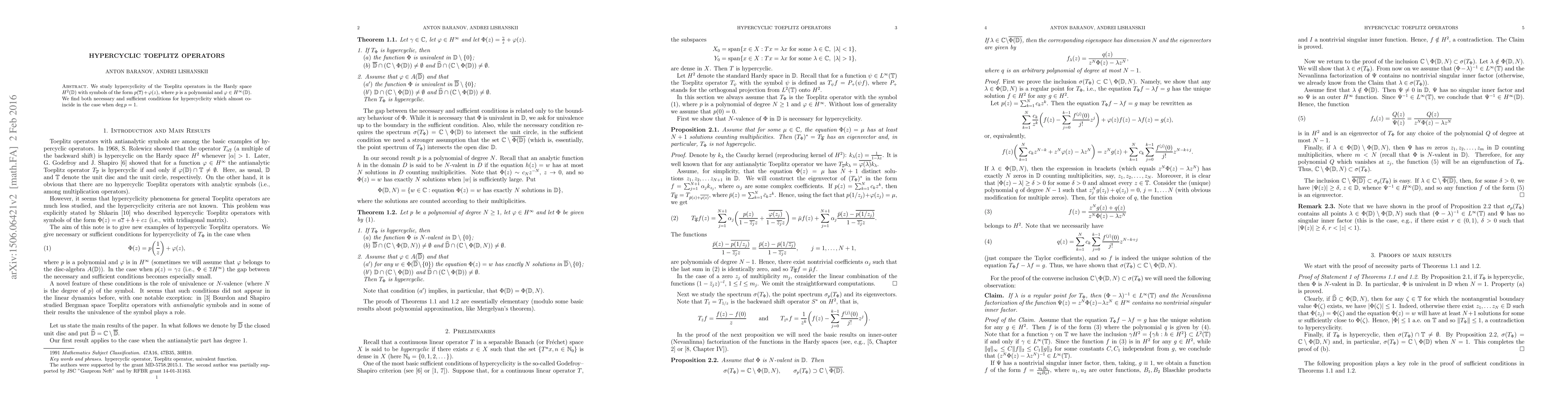 This paper investigates the hypercyclicity of Toeplitz operators in the Hardy space $H^2(\mathbb{D})$ with specific symbol forms, finding necessary and sufficient conditions for hypercyclicity, particularly when the degree of the polynomial part is one. The conditions nearly coincide in this degree-one case.