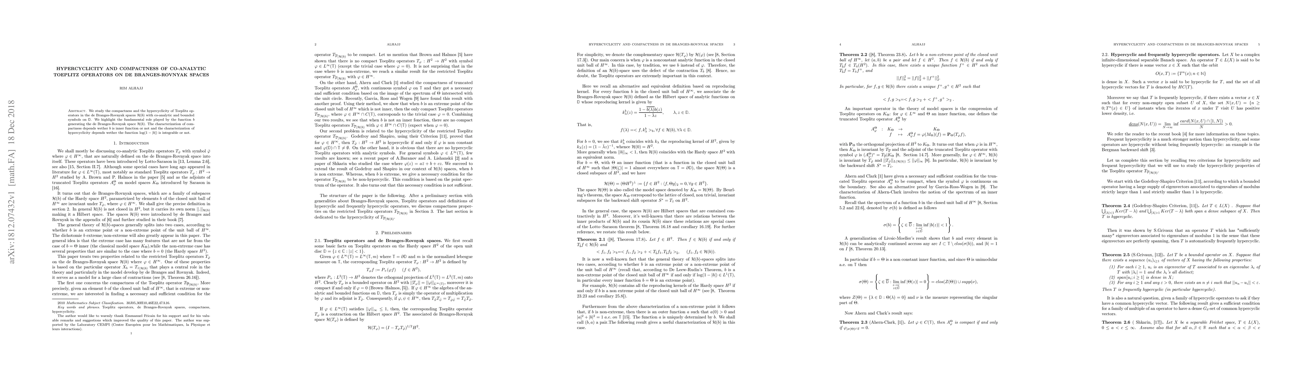 This paper investigates the compactness and hypercyclicity of co-analytic Toeplitz operators in de Branges-Rovnyak spaces H(b). The study reveals that compactness depends on whether the generating function b is inner, while hypercyclicity hinges on the integrability of log(1-|b|).