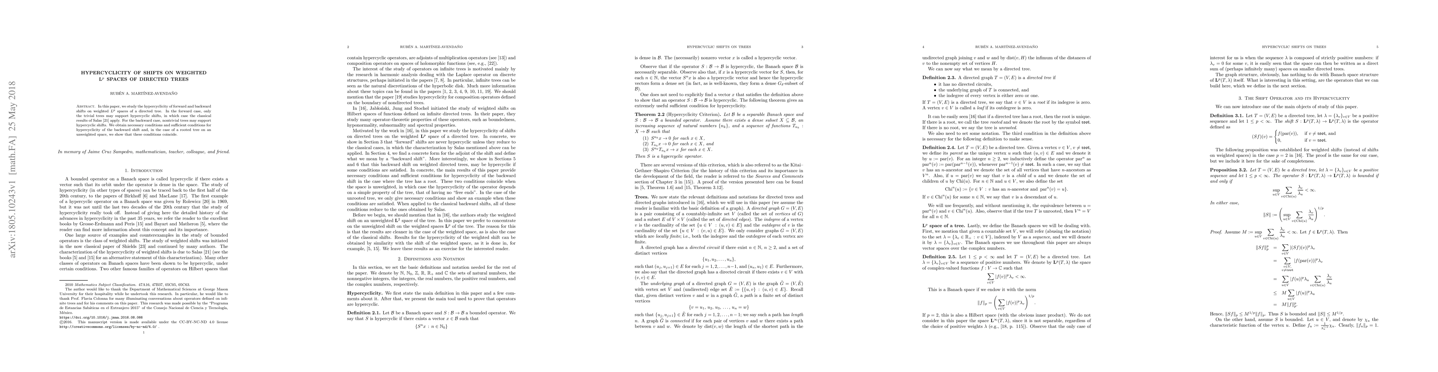 The paper derives conditions for hypercyclicity of shifts on weighted L^p spaces of directed trees, identifying cases where backward shifts can be hypercyclic on nontrivial trees.