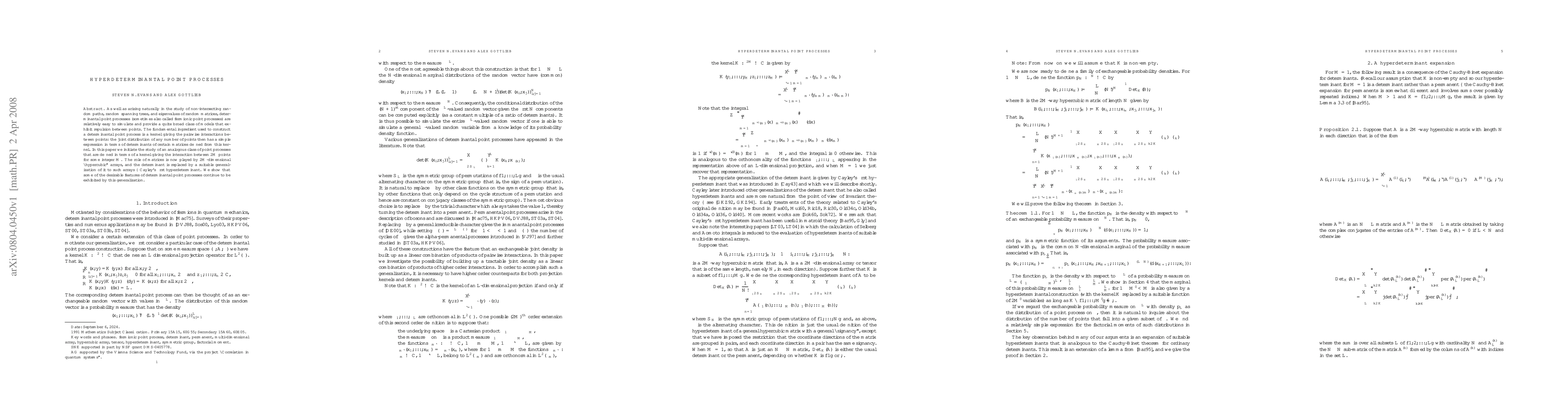 As well as arising naturally in the study of non-intersecting random paths, random spanning trees, and eigenvalues of random matrices, determinantal point processes (sometimes also called fermionic point processes) are relatively easy to simulate and provide a quite broad class of models that exhibit repulsion between points. The fundamental ingredient used to construct a determinantal point process is a kernel giving the pairwise interactions between points: the joint distribution of any number of points then has a simple expression in terms of determinants of certain matrices defined from this kernel. In this paper we initiate the study of an analogous class of point processes that are defined in terms of a kernel giving the interaction between $2M$ points for some integer $M$. The role of matrices is now played by $2M$-dimensional "hypercubic" arrays, and the determinant is replaced by a suitable generalization of it to such arrays -- Cayley's first hyperdeterminant. We show that some of the desirable features of determinantal point processes continue to be exhibited by this generalization.