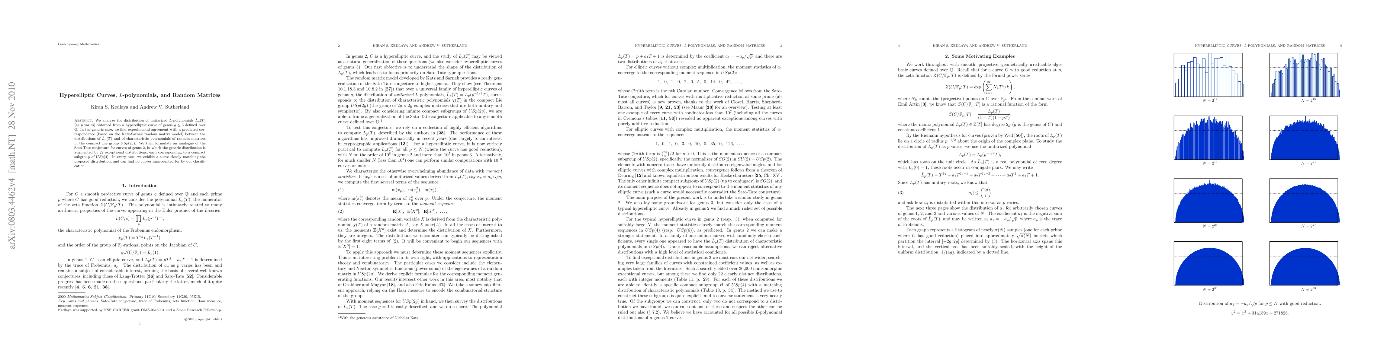 This paper investigates the distribution of unitarized L-polynomials from hyperelliptic curves of genus up to 3 over Q, finding agreement with predictions from the Katz-Sarnak random matrix model. It proposes an analogue of the Sato-Tate conjecture for genus 2 curves, including exceptional distributions linked to subgroups of USp(4).