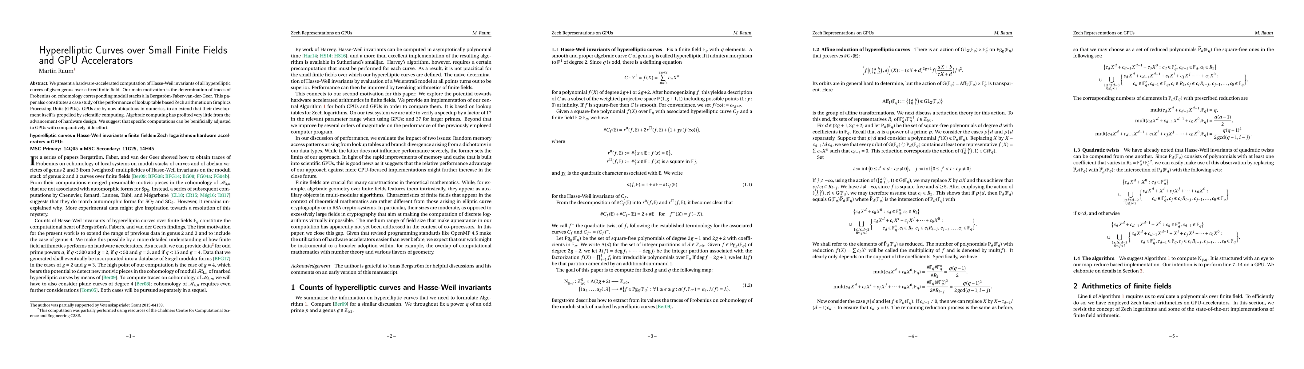 Researchers developed a method to quickly compute Hasse-Weil invariants for hyperelliptic curves on small finite fields using GPUs, which can significantly improve computational efficiency for certain algebraic computing tasks.