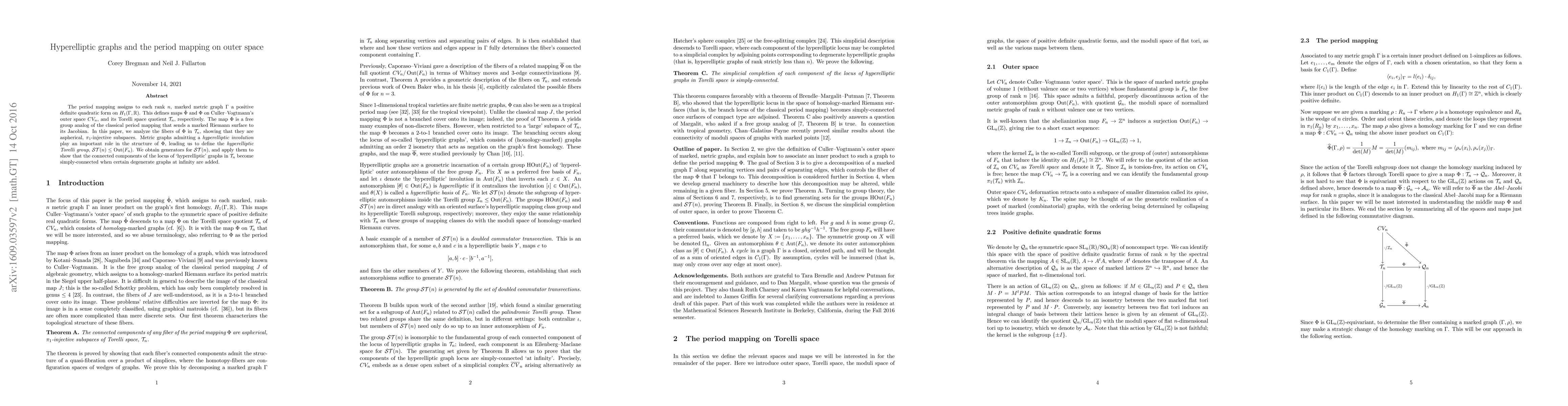 The period mapping assigns to each rank n, marked metric graph Gamma a positive definite quadratic form on H_1(Gamma). This defines maps Phi* and Phi on Culler--Vogtmann's outer space CV_n, and its Torelli space quotient T_n, respectively. The map Phi is a free group analog of the classical period mapping that sends a marked Riemann surface to its Jacobian. In this paper, we analyze the fibers of Phi in T_n, showing that they are aspherical, pi_1-injective subspaces. Metric graphs admitting a 'hyperelliptic involution' play an important role in the structure of Phi, leading us to define the hyperelliptic Torelli group, ST(n) < Out(F_n). We obtain generators for ST(n), and apply them to show that the connected components of the locus of 'hyperelliptic' graphs in T_n become simply-connected when certain degenerate graphs at infinity are added.