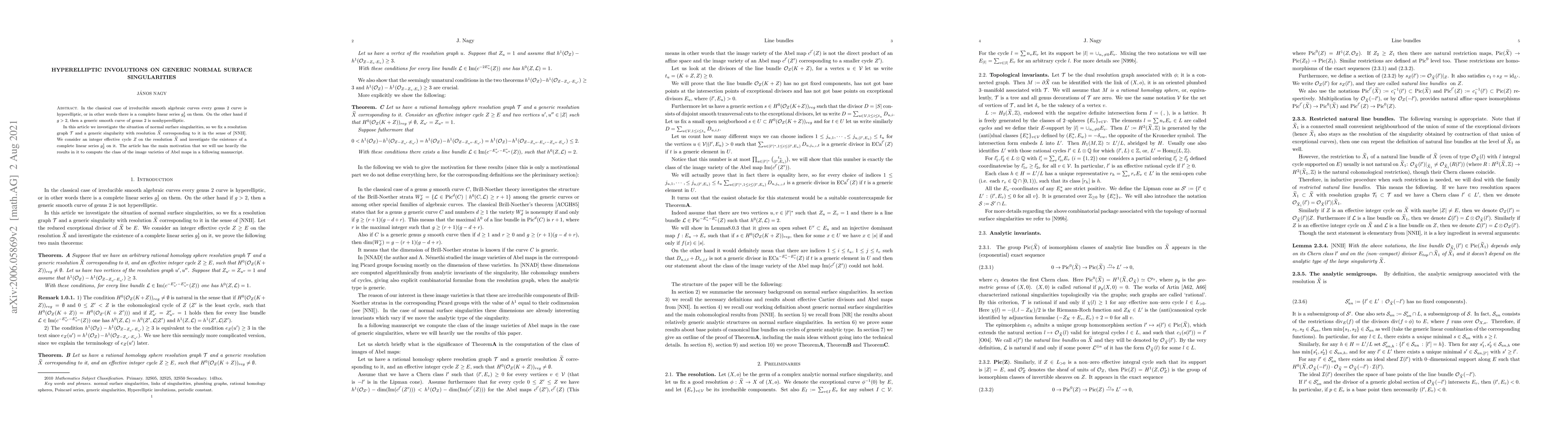 This paper explores the existence of hyperelliptic involutions on generic normal surface singularities, focusing on the resolution graph $\mathcal{T}$ and the corresponding resolution $\tX$. It investigates the presence of a complete linear series $g_2^1$ on an integer effective cycle $Z$ on $\tX$, motivated by its application in computing the class of image varieties of Abel maps in future work.