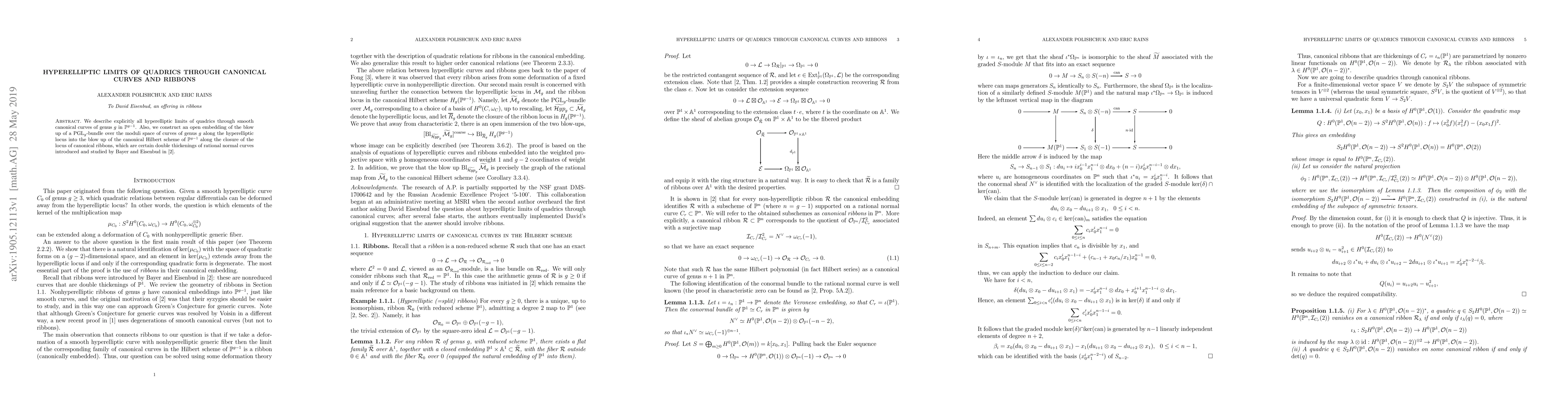 We describe explicitly all hyperelliptic limits of quadrics through smooth canonical curves of genus $g$ in ${\mathbb P}^{g-1}$. Also, we construct an open embedding of the blow up of a ${\rm PGL}_g$-bundle over the moduli space of curves of genus $g$ along the hyperelliptic locus into the blow up of the canonical Hilbert scheme of ${\mathbb P}^{g-1}$ along the closure of the locus of canonical ribbons, which are certain double thickenings of rational normal curves introduced and studied by Bayer and Eisenbud.