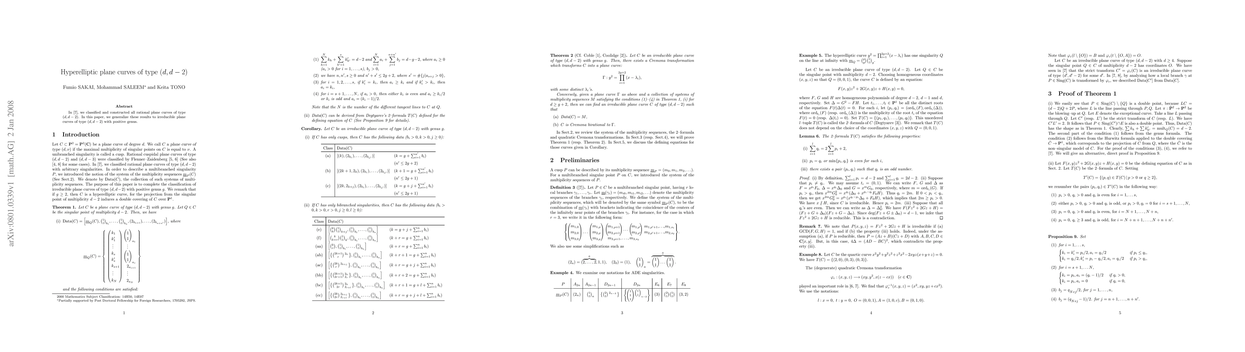Summary: This paper extends the classification and construction of rational plane curves of type (d,d-2) to include irreducible plane curves of the same type with positive genus, building on previous work focused on rational curves.