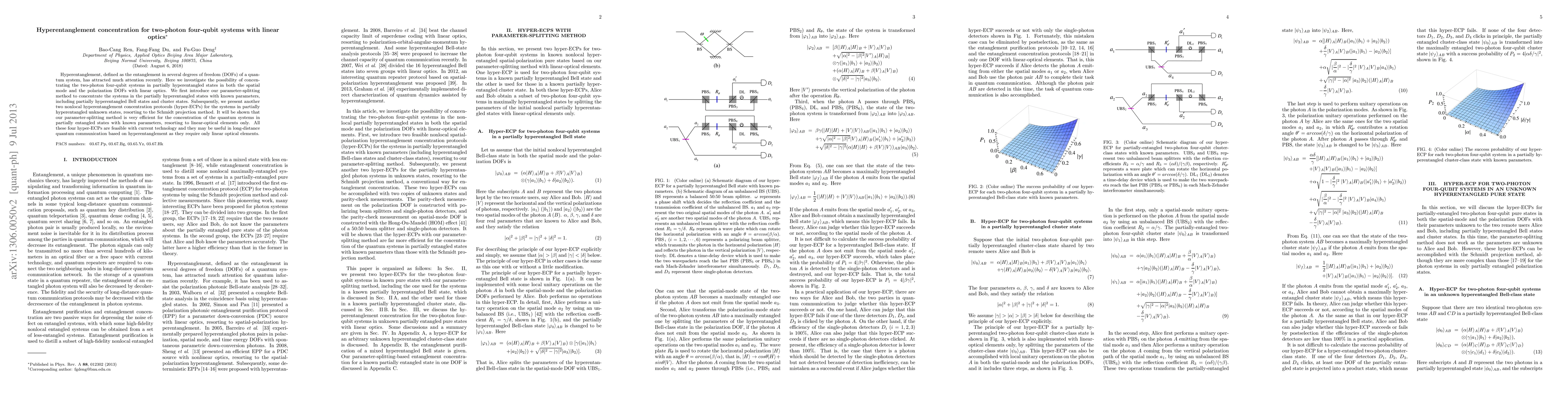 This paper explores hyperentanglement concentration for two-photon four-qubit systems using linear optics, introducing efficient protocols to concentrate partially hyperentangled states in both spatial mode and polarization degrees of freedom. The proposed methods, including parameter-splitting and Schmidt projection techniques, are feasible with current technology and could enhance long-distance quantum communication.