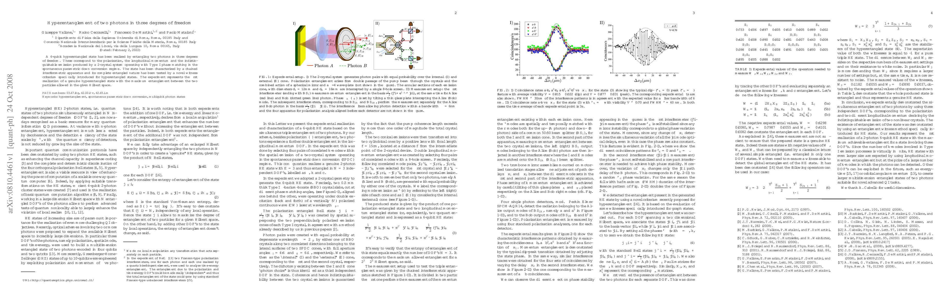 This paper reports the first realization of a 6-qubit hyperentangled state by entangling two photons across three degrees of freedom: polarization, longitudinal momentum, and indistinguishable emission. The state was characterized using a novel witness criterion and a chained interferometric apparatus.