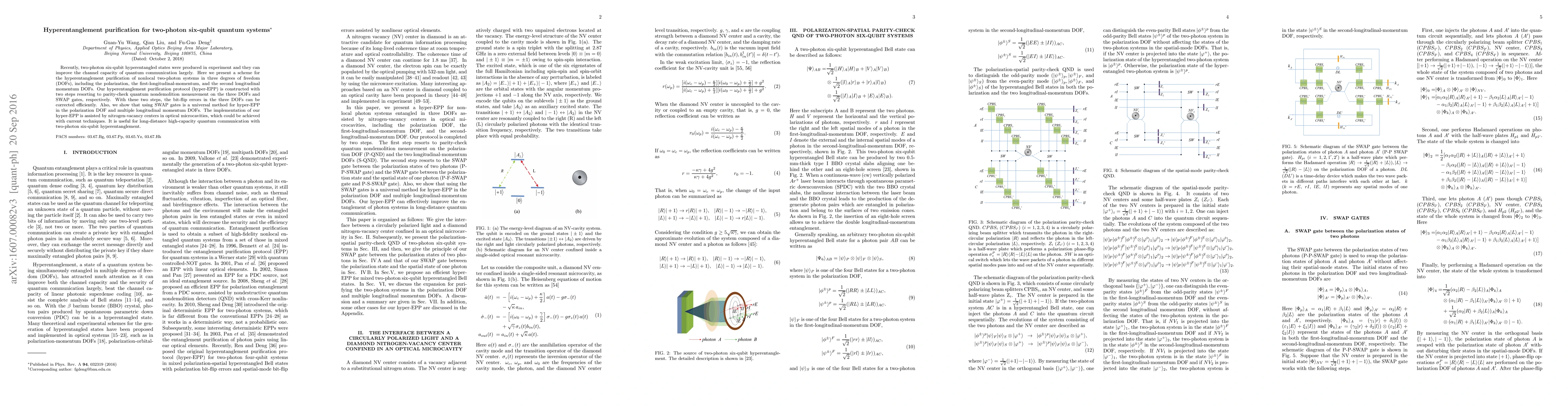 Researchers develop a method for purifying hyperentanglement in two-photon six-qubit systems, improving quantum communication capacity and enabling long-distance high-capacity quantum communication.