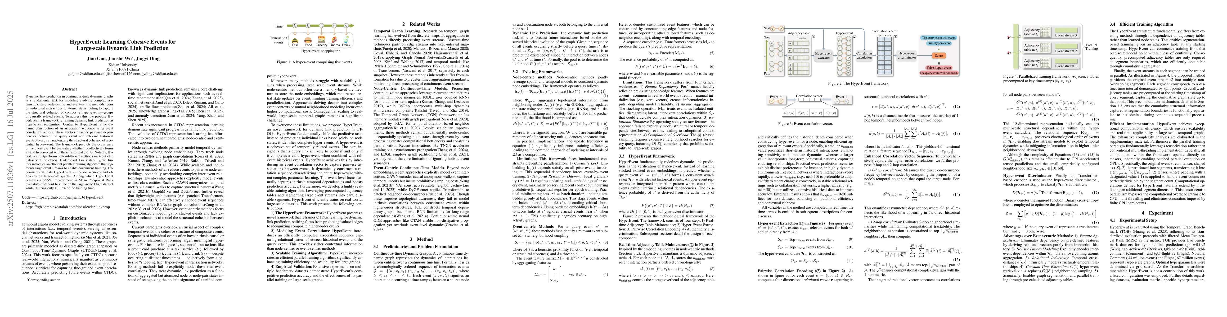 Dynamic link prediction in continuous-time dynamic graphs is a fundamental task for modeling evolving complex systems. Existing node-centric and event-centric methods focus on individual interactions or atomic states, failing to capture the structural cohesion of composite hyper-events, groups of causally related events. To address this, we propose HyperEvent, a framework reframing dynamic link prediction as hyper-event recognition. Central to HyperEvent is the dynamic construction of an association sequence using event correlation vectors. These vectors quantify pairwise dependencies between the query event and relevant historical events, thereby characterizing the structural cohesion of a potential hyper-event. The framework predicts the occurrence of the query event by evaluating whether it collectively forms a valid hyper-event with these historical events. Notably, HyperEvent outperforms state-of-the-art methods on 4 out of 5 datasets in the official leaderboard. For scalability, we further introduce an efficient parallel training algorithm that segments large event streams to enable concurrent training. Experiments validate HyperEvent's superior accuracy and efficiency on large-scale graphs. Among which HyperEvent achieves a 6.95% improvement in Mean Reciprocal Rank over state-of-the-art baseline on the large-scale Flight dataset while utilizing only 10.17% of the training time.