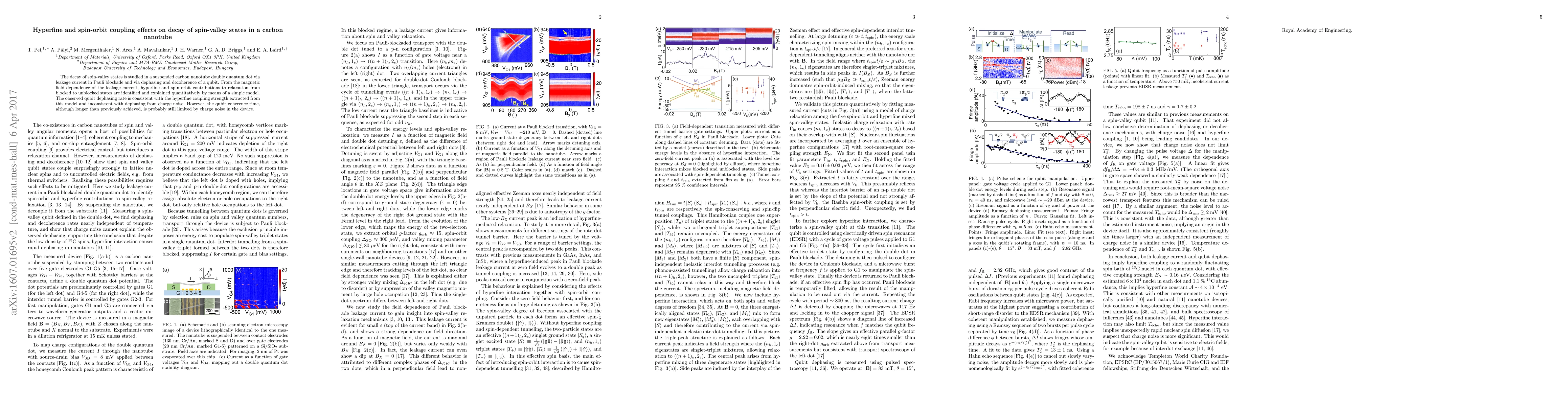 This paper investigates the decay of spin-valley states in a carbon nanotube double quantum dot, identifying hyperfine and spin-orbit contributions to relaxation through leakage current and qubit dephasing. The study finds that hyperfine coupling aligns with observed qubit dephasing, while charge noise likely limits coherence time.