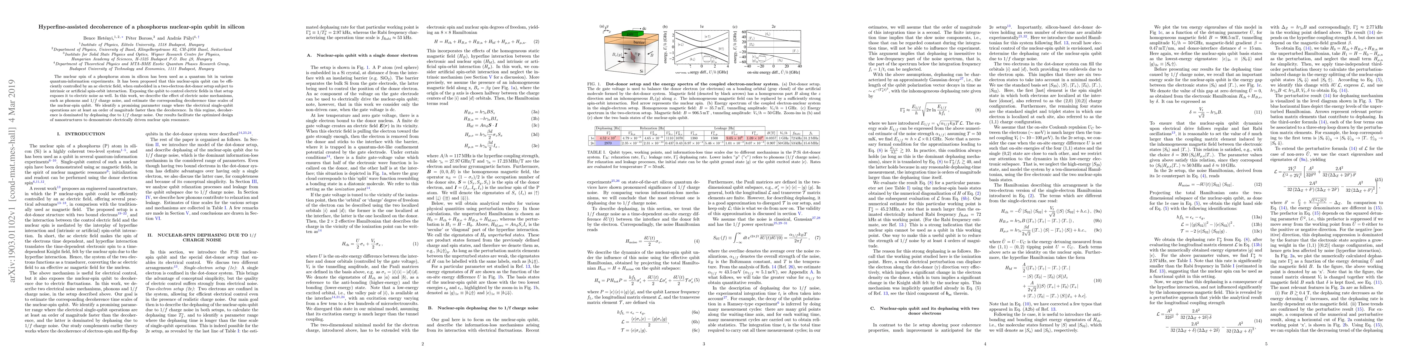 This paper investigates the decoherence mechanisms affecting a phosphorus nuclear-spin qubit in silicon due to electric noise, identifying a parameter range where qubit operations are faster than decoherence. The study finds that decoherence is primarily driven by $1/f$ charge noise, aiding in the design of nanostructures for electrically driven nuclear spin resonance.