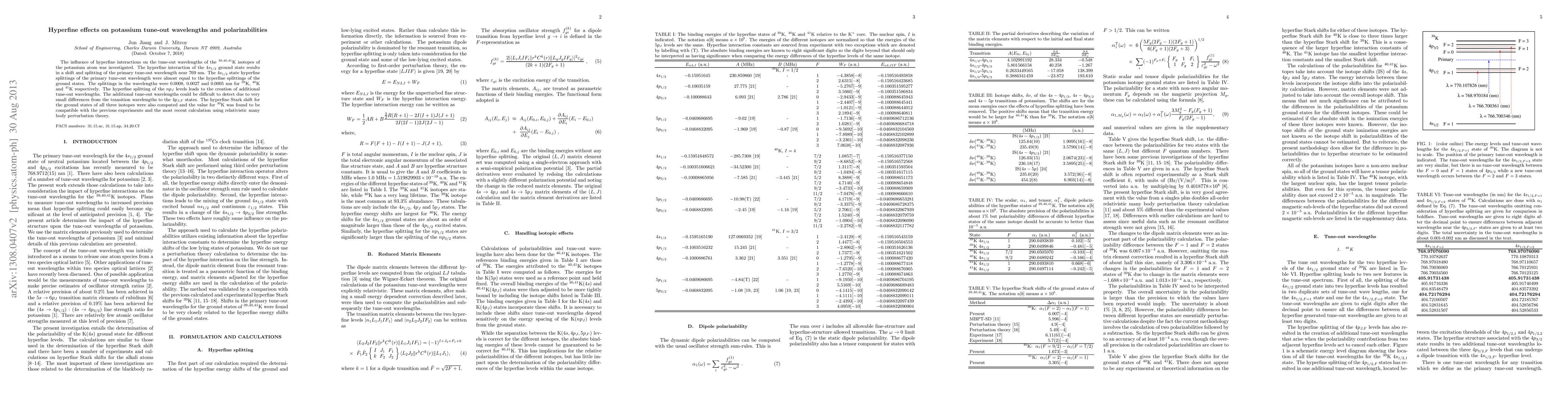 This paper investigates the hyperfine interactions affecting the tune-out wavelengths of potassium isotopes $^{39,40,41}$K, revealing shifts and splittings near 769 nm due to hyperfine interactions in the $4s_{1/2}$ state. The hyperfine splittings for $^{39}$K, $^{40}$K, and $^{41}$K were found to be 0.0008, 0.0027, and 0.0005 nm, respectively.