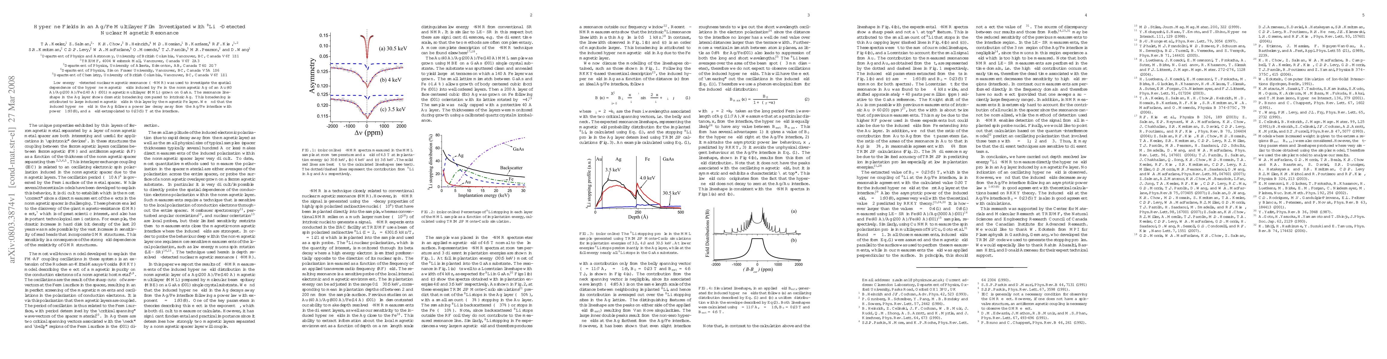 Low energy $\beta$-detected nuclear magnetic resonance ($\beta$-NMR) was used to investigate the spatial dependence of the hyperfine magnetic fields induced by Fe in the nonmagnetic Ag of an Au(40 \AA)/Ag(200 \AA)/Fe(140 \AA) (001) magnetic multilayer (MML) grown on GaAs. The resonance lineshape in the Ag layer shows dramatic broadening compared to intrinsic Ag. This broadening is attributed to large induced magnetic fields in this layer by the magnetic Fe layer. We find that the induced hyperfine field in the Ag follows a power law decay away from the Ag/Fe interface with power $-1.93(8)$, and a field extrapolated to $0.23(5)$ T at the interface.